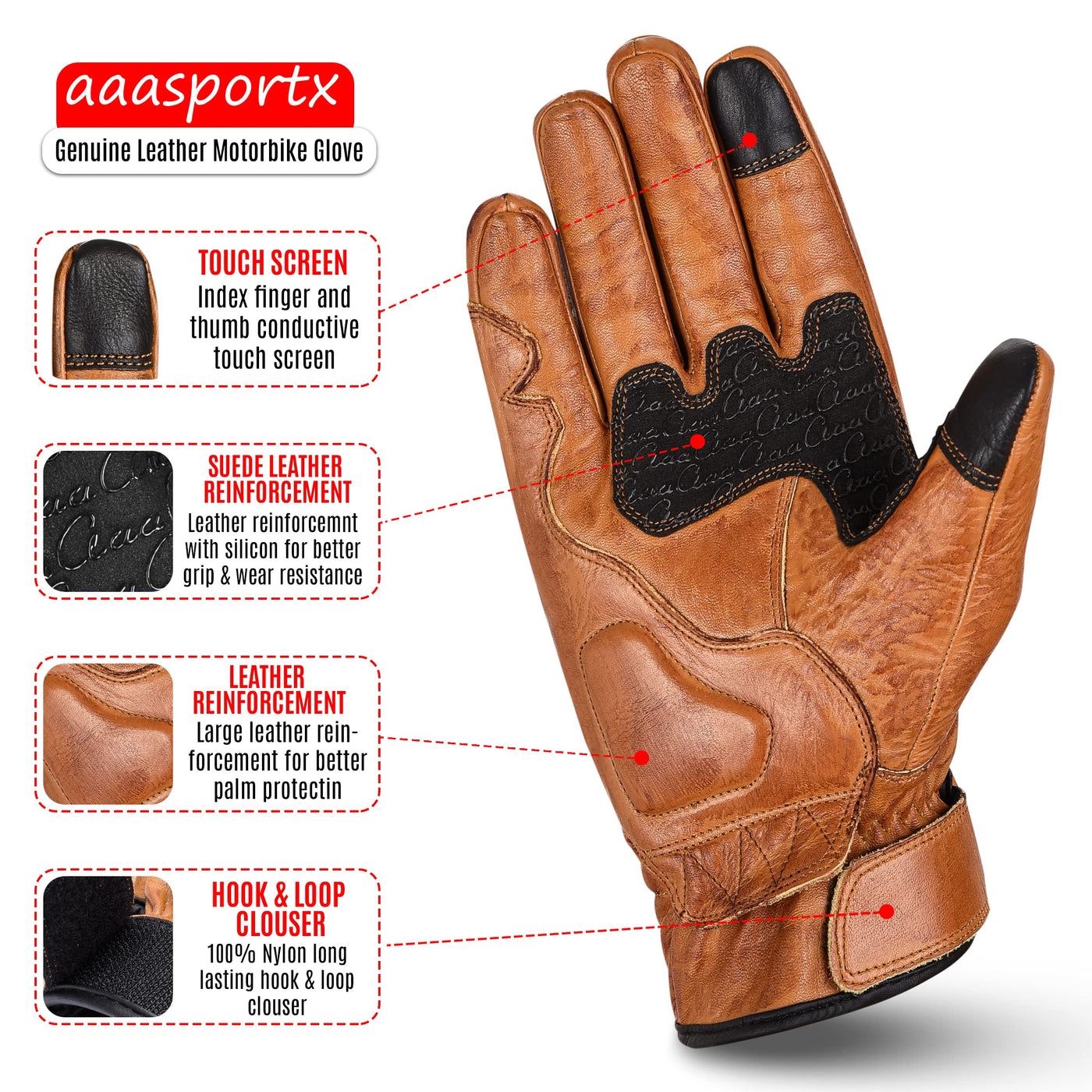Aaasportx Motorcycle Gloves Leather With Touchscreen Function - Protectors Motorcycle Gloves For Men And Women For All Weather -