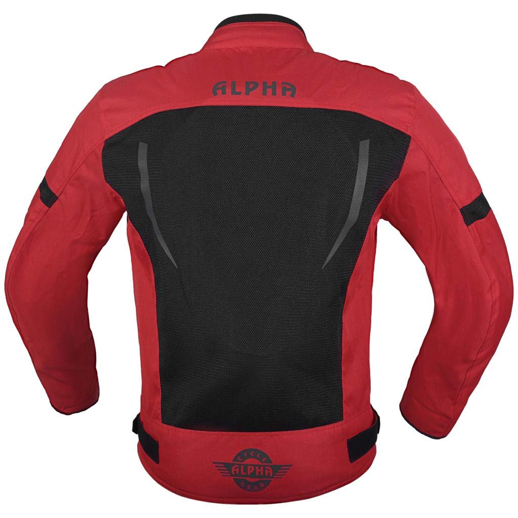 Alpha Cycle Gear Hi Vis Mesh Motorcycle Jacket For Mens Riding Bikers Racing Dual Sports Bike Armored Protective (Red, Medium)