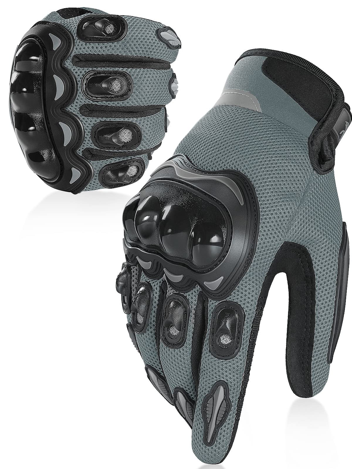 Cofit Summer Motorcycle Glove For Men And Women, Breathable Mesh Motorbike Gloves With Hard Knuckle And Touchscreen For Bmx Atv Mtb Riding, Road Racing, Cycling And Bike Gray M