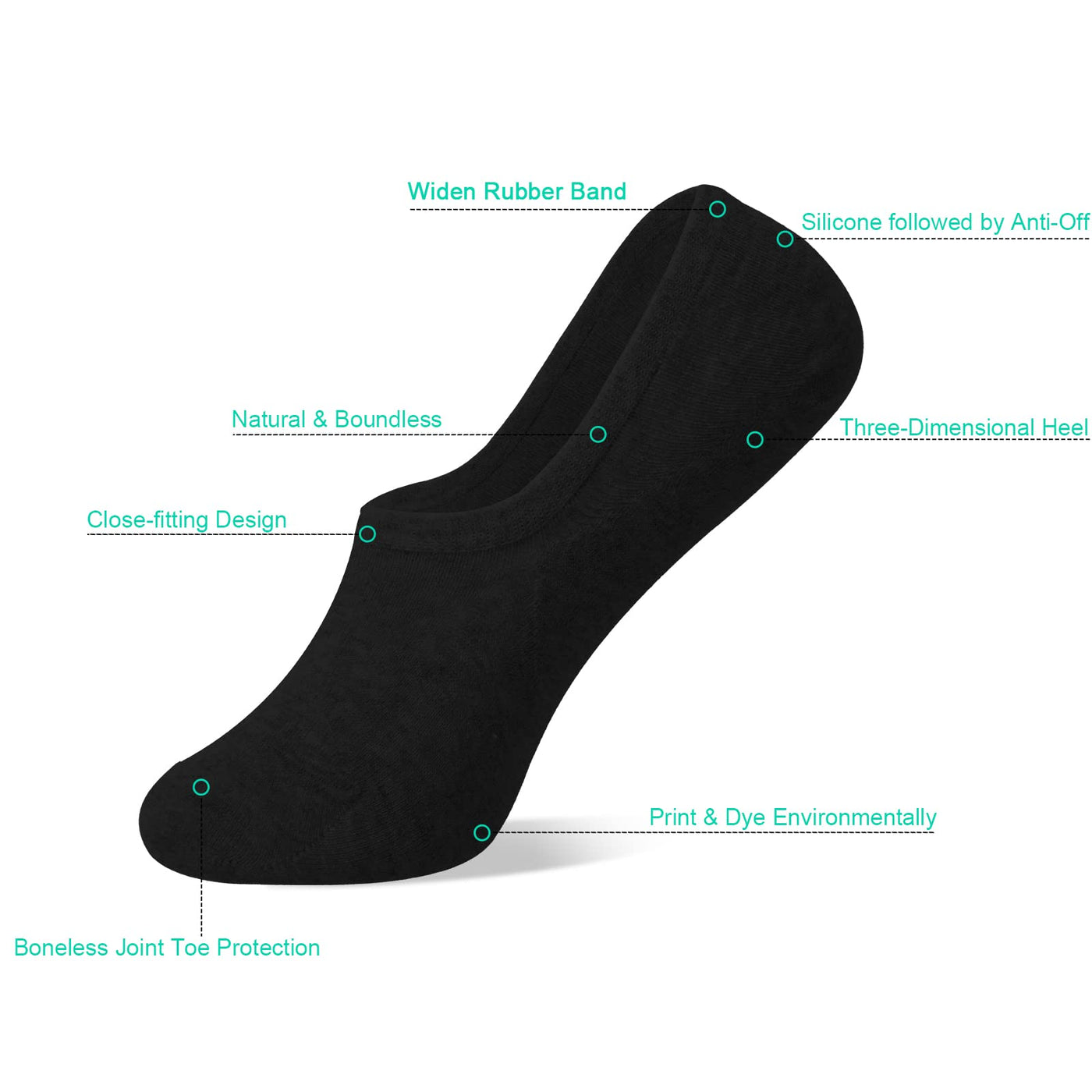Q: What makes these socks non-slip?A: The socks feature 5 silicone heel grip technology, ensuring that they stay securely in place throughout the day, providing a comfortable fit without slipping.