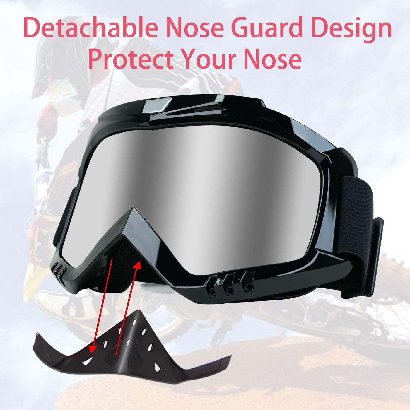 Dmeixs Motorcycle Goggles Dirt Bike Goggles Grip For Helmet Anti Uv Windproof Dustproof Anti Fog Glasses For Atv Off Road Racing With Cool Look Headwear Silver Lens 2 In 1