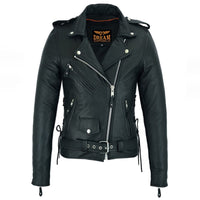 Dream Apparel Women’S Classic Leather Motorcycle Jacket With Zip Out Lining, Biker Jacket For Ladies With Side Laces (Black, Size Xs)
