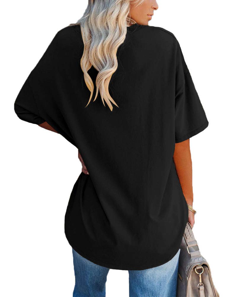 Ebifin Womens Oversized T Shirts Tees Half Sleeve V Neck Comfy Cozy Cotton Tunic Tops