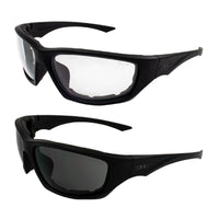 Epoch Eyewear Foam-3 Padded Motorcycle Sunglasses 2 Pair Black Frames With Smoke Lens & Clear Lenses