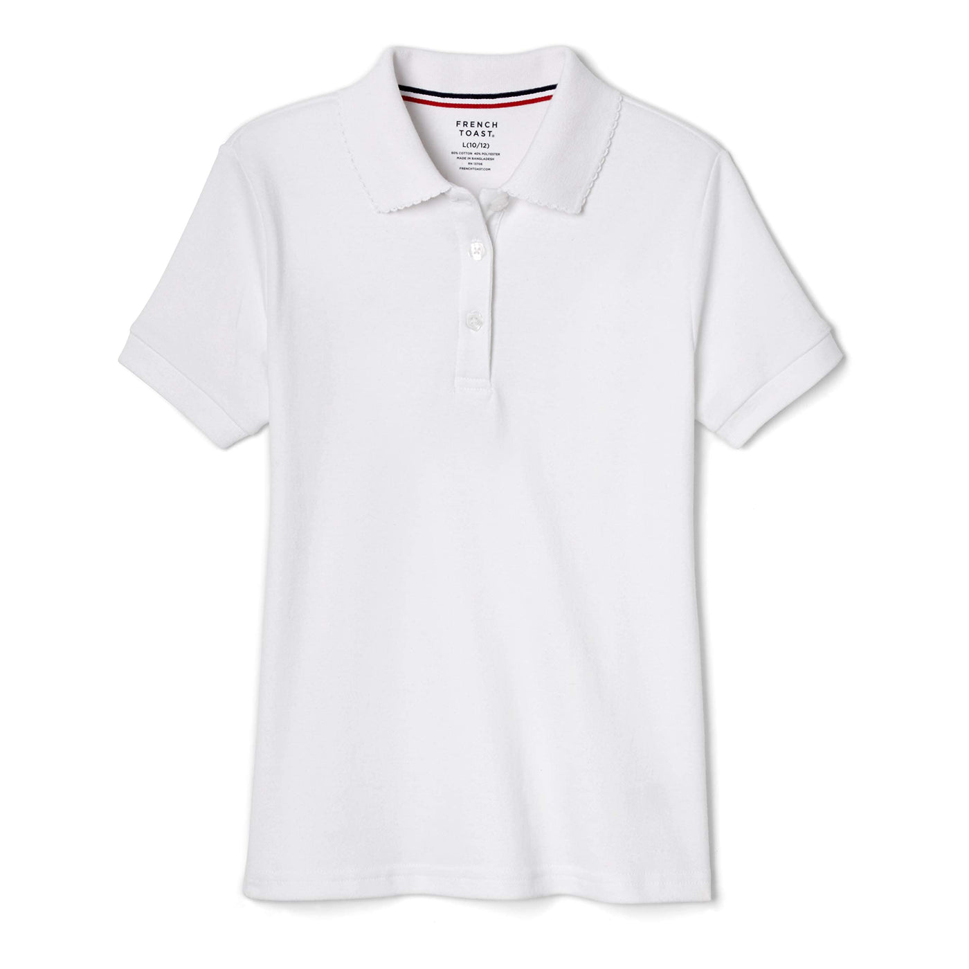 French Toast Girls Short Sleeve Picot Collar (Standard Plus) Polo Shirt, White, 7 8 Us