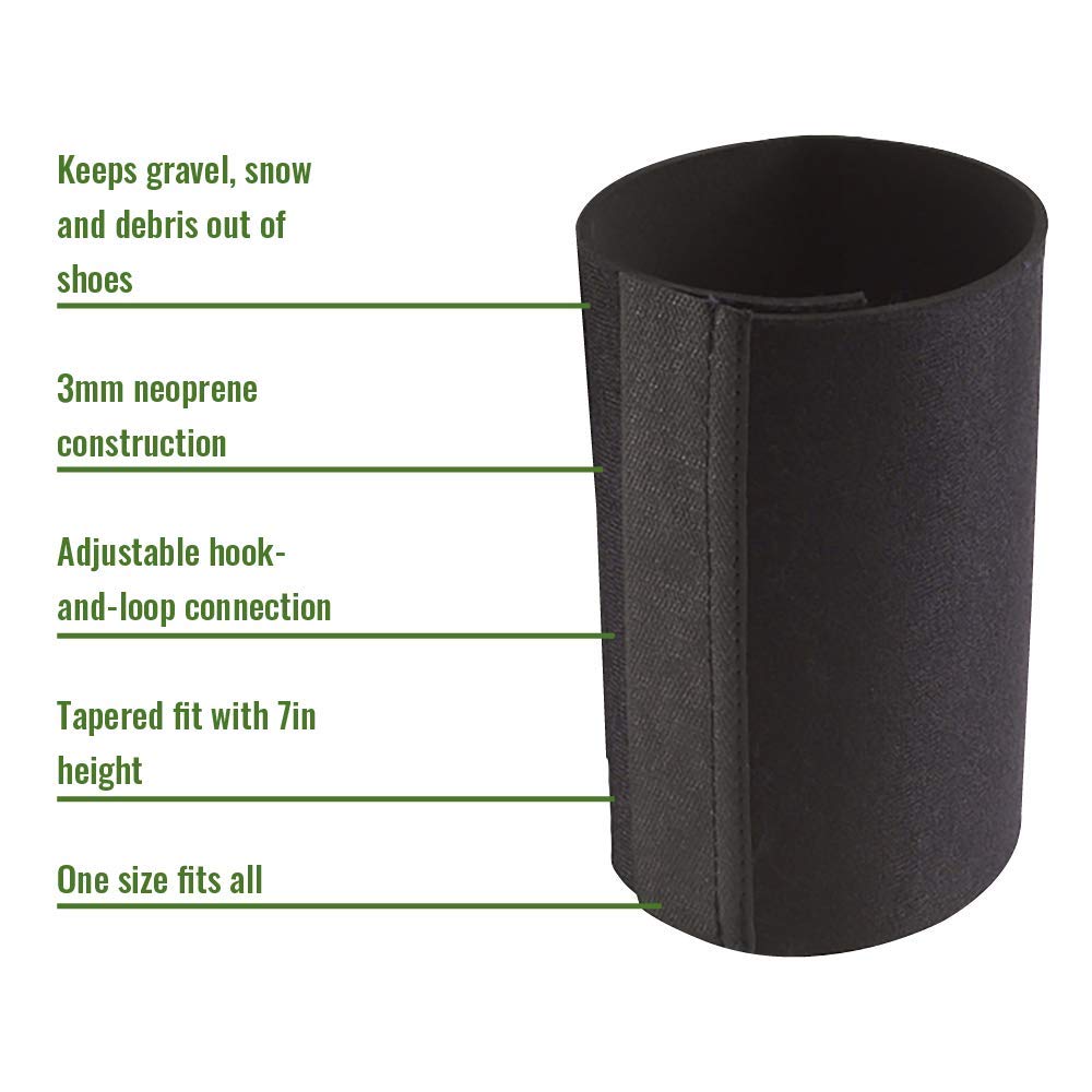 Wrap-Around Gravel Guards Keep Gravel, Snow, Sand And Debris Out Of Your Shoes And Away From Booties. 3Mm Neoprene Construction With Adjustable Hook And Loop Connection. Tapered Fit With 7 Inch Height. One Size Fits All. Black.
