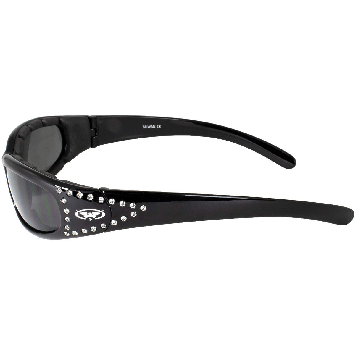Global Vision Eyewear Marilyn 3 Womens Motorcycle Sunglasses With Eva Foam Padding Bling (Black Frame Smoke Lens)