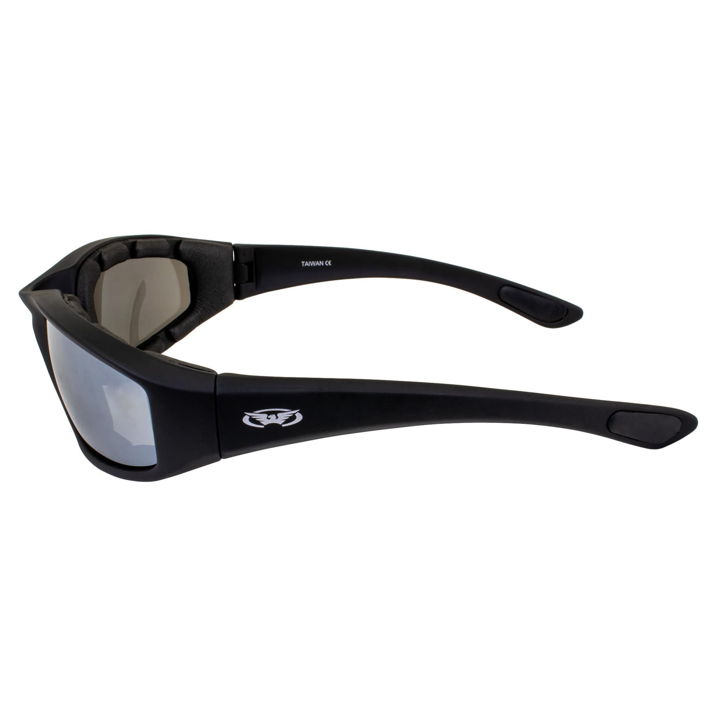 Global Vision Kickback Padded Motorcycle Sunglasses 2 Pair Black Frame Flash Mirror & Smoke Lenses