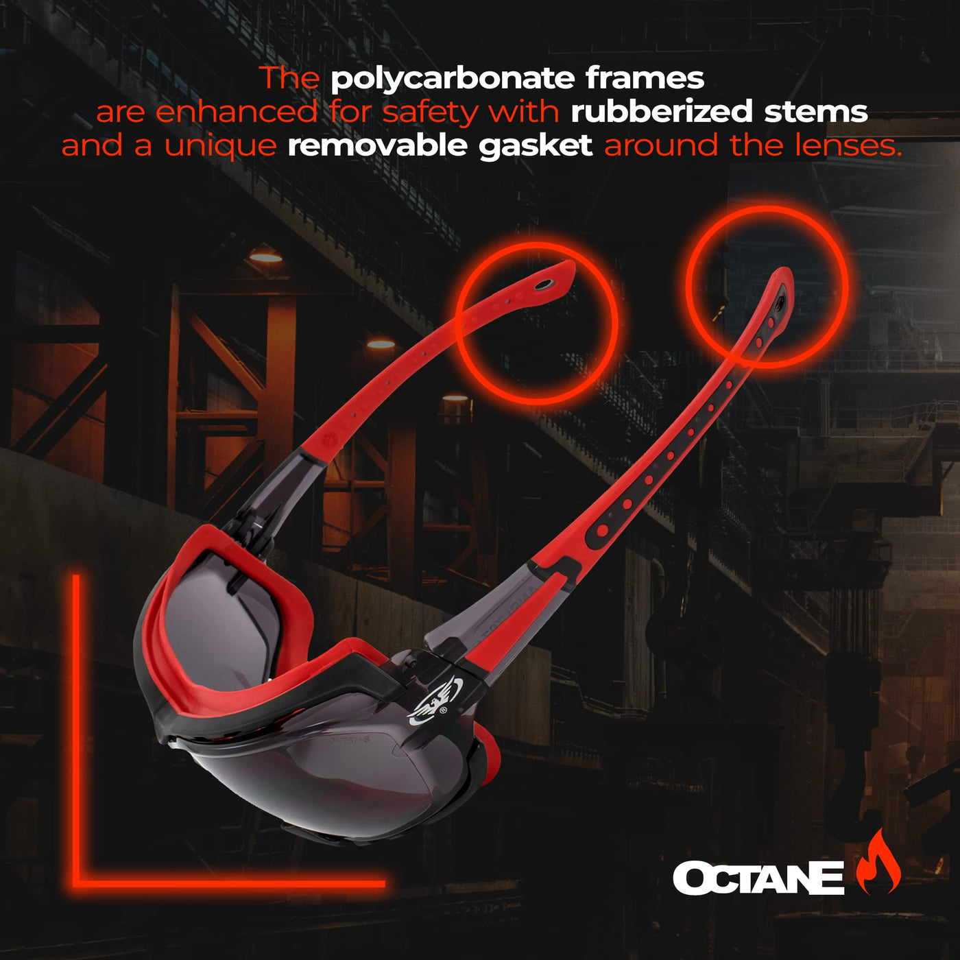 The Global Vision Eyewear Octane Is Fuel For Your Fun -- And Protection. The Octane A/F Is Jacked With Features Whether You'Re Riding Across The Country Side Or Hard At Work On The Job. The Polycarbonate Frames Are Enhanced For Safety With Rubberized Stems And A Unique Removable Gasket Around The Lenses. Rubber Seals That Form Fit To The Face Are Yet Another Measure That Keeps Unwanted Dust Or Wind From Hampering Your Vision In This Smoke Pair Of Eyewear That Enhances Your Performance In Low Light Or Even The Dark. The Nose Pads Are Double Injected With Rubber And A Strap Is Included To Help Keep These Specs On The Spot. Octane Is The Juice For What You Need To Get Done And This Pair Of Glasses Keep Your Vision Clear. Customer Notice: Octane'S Fit Best On Medium To Large Faces. They Effectively Keep Wind And Dust Out For The Vast Majority Of People But For A Rare Few They May Not Be The Best Fit.