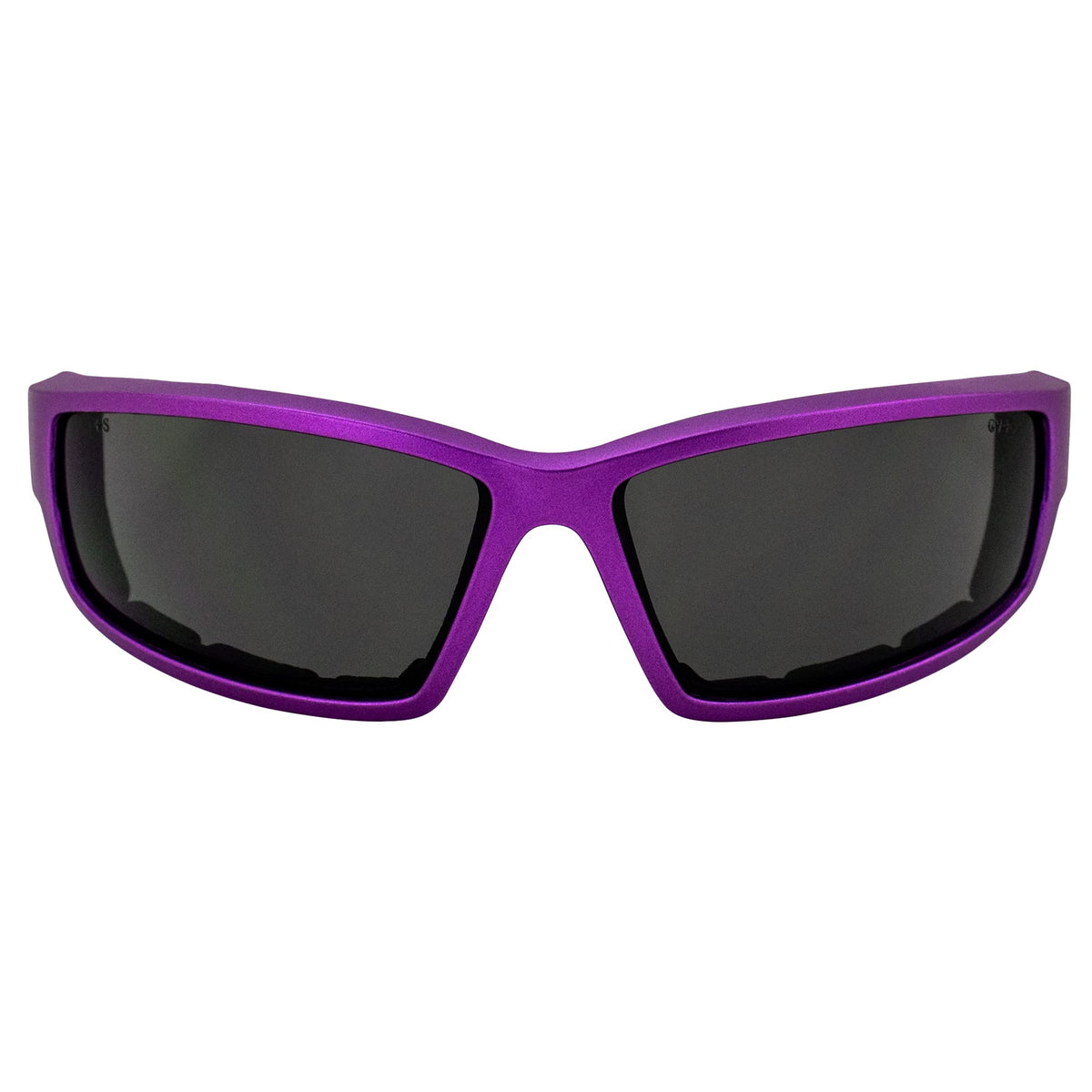 Global Vision Sly Padded Motorcycle Glasses For Women Sunglasses Purple Metallic Frame W/Smoke Lenses