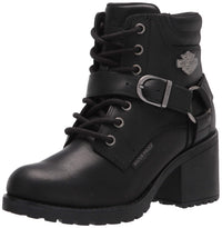 Q: What makes the Harley-Davidson Women's Howell Boot suitable for riding?A: The Harley-Davidson Women's Howell Boot is designed specifically for riding with its waterproof full grain leather construction, Hydro-Guard waterproof membrane, and a secure fit provided by the YKK locking zipper and strap across the foot.