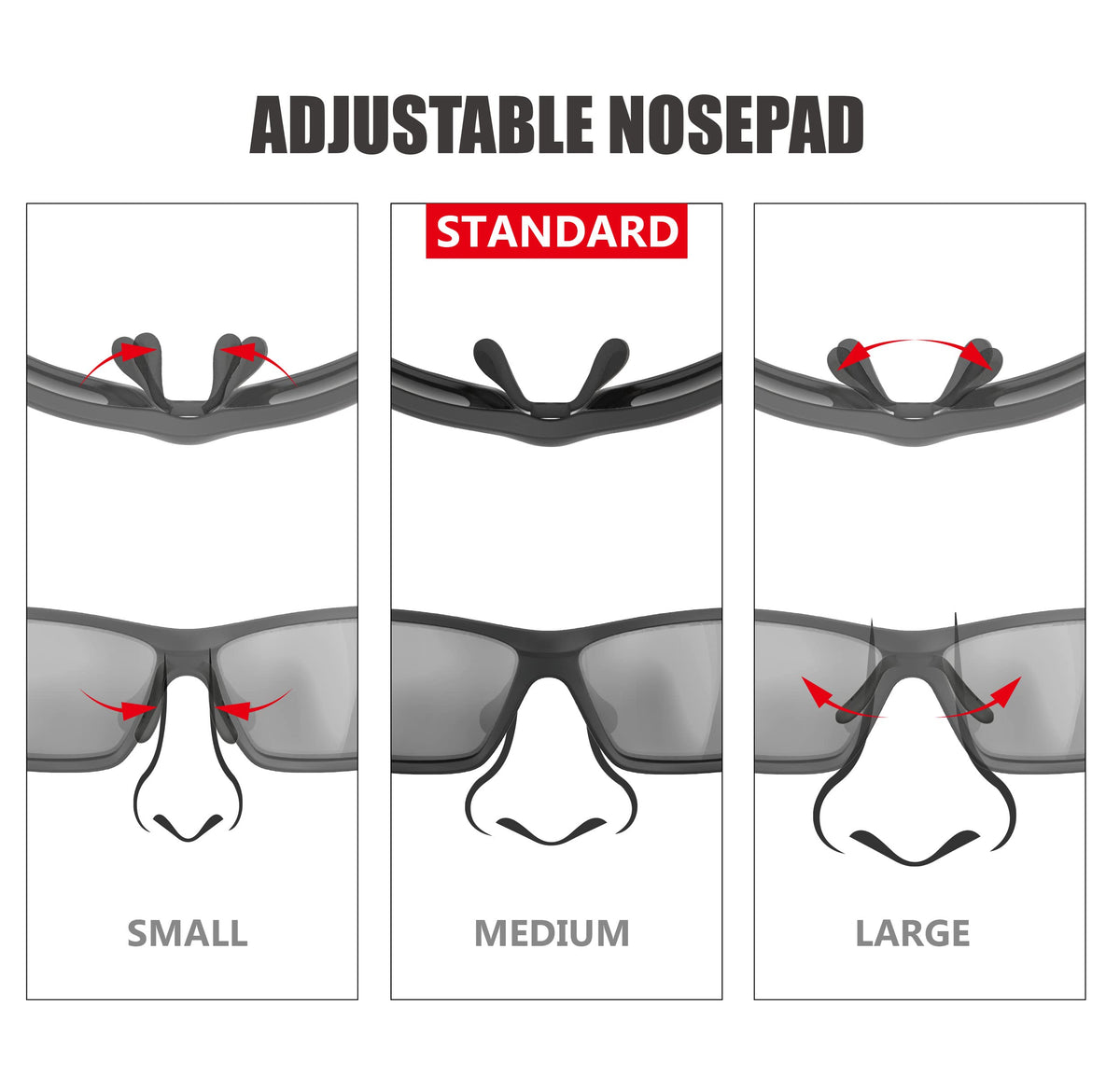 Q: Are these goggles suitable for people with larger faces?A: Yes, the HTS HUNTERSKY J11 goggles are ergonomically designed to fit adults with large to medium-sized faces. The adjustable nose pads and non-slip rubber tips ensure a secure and comfortable fit during various activities.