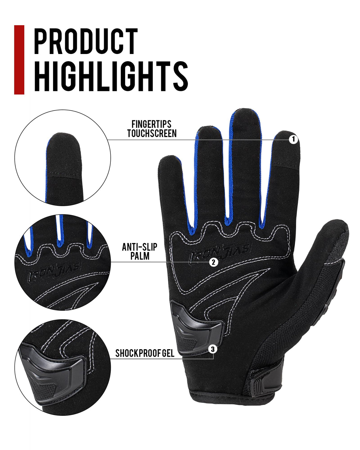 Iron Jia'S Motorcycle Gloves Full Finger Durable For Road Racing Bike Summer Spring Powersports Support Touch Screen Blue-M