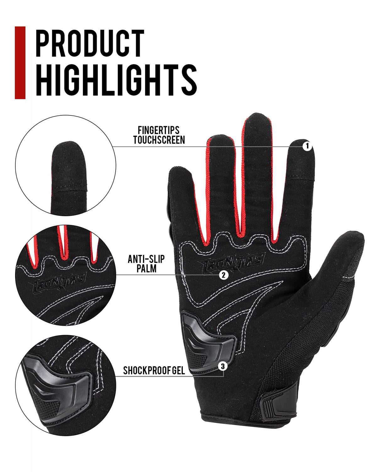 Iron Jia'S Motorcycle Gloves Full Finger Durable For Road Racing Bike Summer Spring Powersports Support Touch Screen Red-L