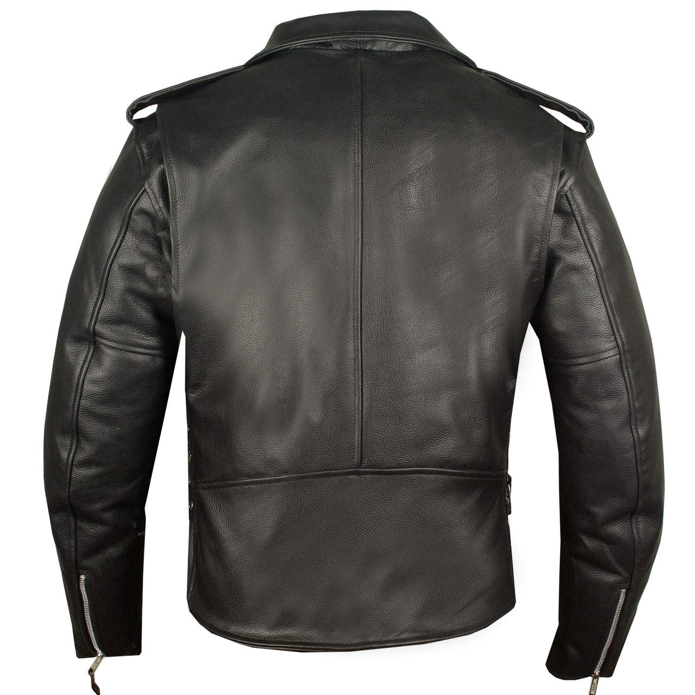 Men'S Iconic Brando Leather Motorcycle Jacket Premium Real Natural Buffalo Biker Jacket - Side Laces Concealed Carry Pockets, All-Season Leather Motorcycle Jacket For Men Black Xl