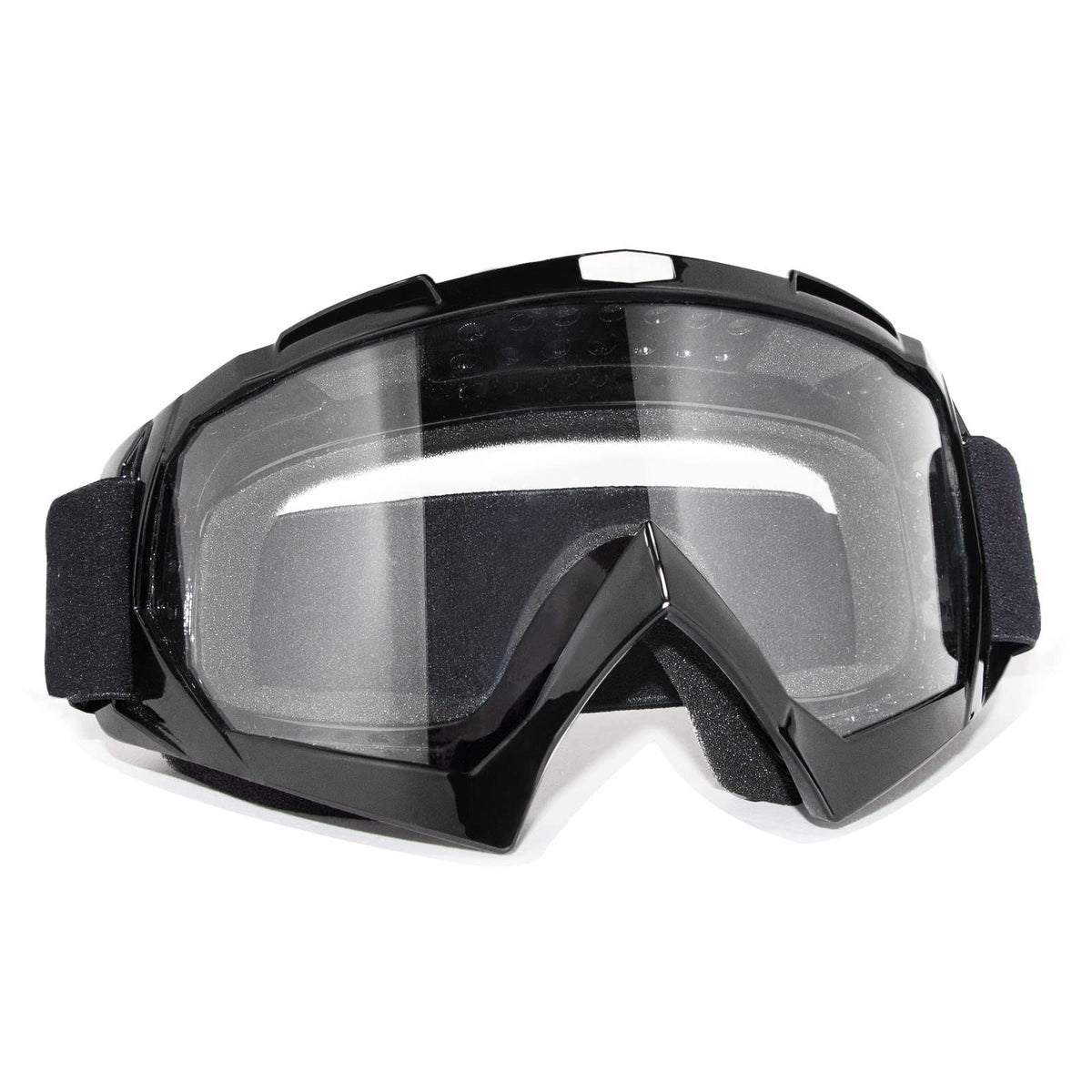 Q: What type of lens do these goggles have?A: The goggles come with a PC (polycarbonate) bendable lens that is anti-scratch, providing clear vision while also being windproof and dustproof.