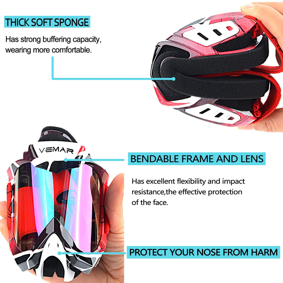 Q: What materials are used in the construction of these goggles?A: The goggles are made from high-quality thermoplastic polyurethane (TPU) and feature a soft padded breathable foam for comfort. The lens provides 100% UV400 protection, ensuring safety during outdoor sports.