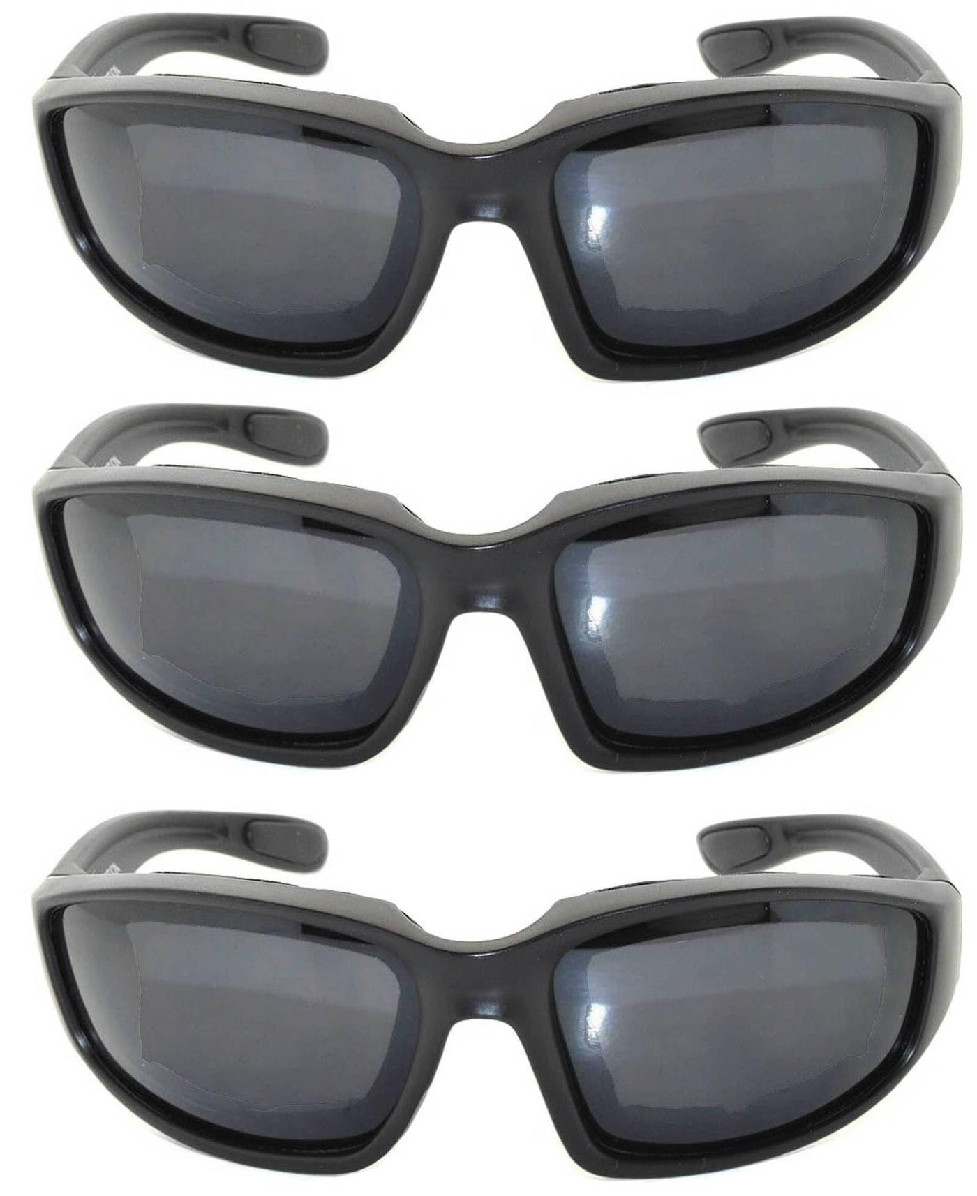3 Pack Choppers Protective Motorcycle Riding Goggle Glasses Night Driving. These awesome Motorcycle goggles have wind proof capability from the sturdy hallowed foam air cushions directly attached from the frame of the goggle providing excellent full day cruising comfort with vents to prevent fogging. Night driving Yellow Lens. Clear Lens - Filters UV and high beams during the night! The lenses are made of polycarbonate coated UV400 grade lenses which offers the ultimate protection against the harmful UVA/UVB from the sun. These are great for those who wear contact lenses. Don't miss out on this great deal. Get yours now!