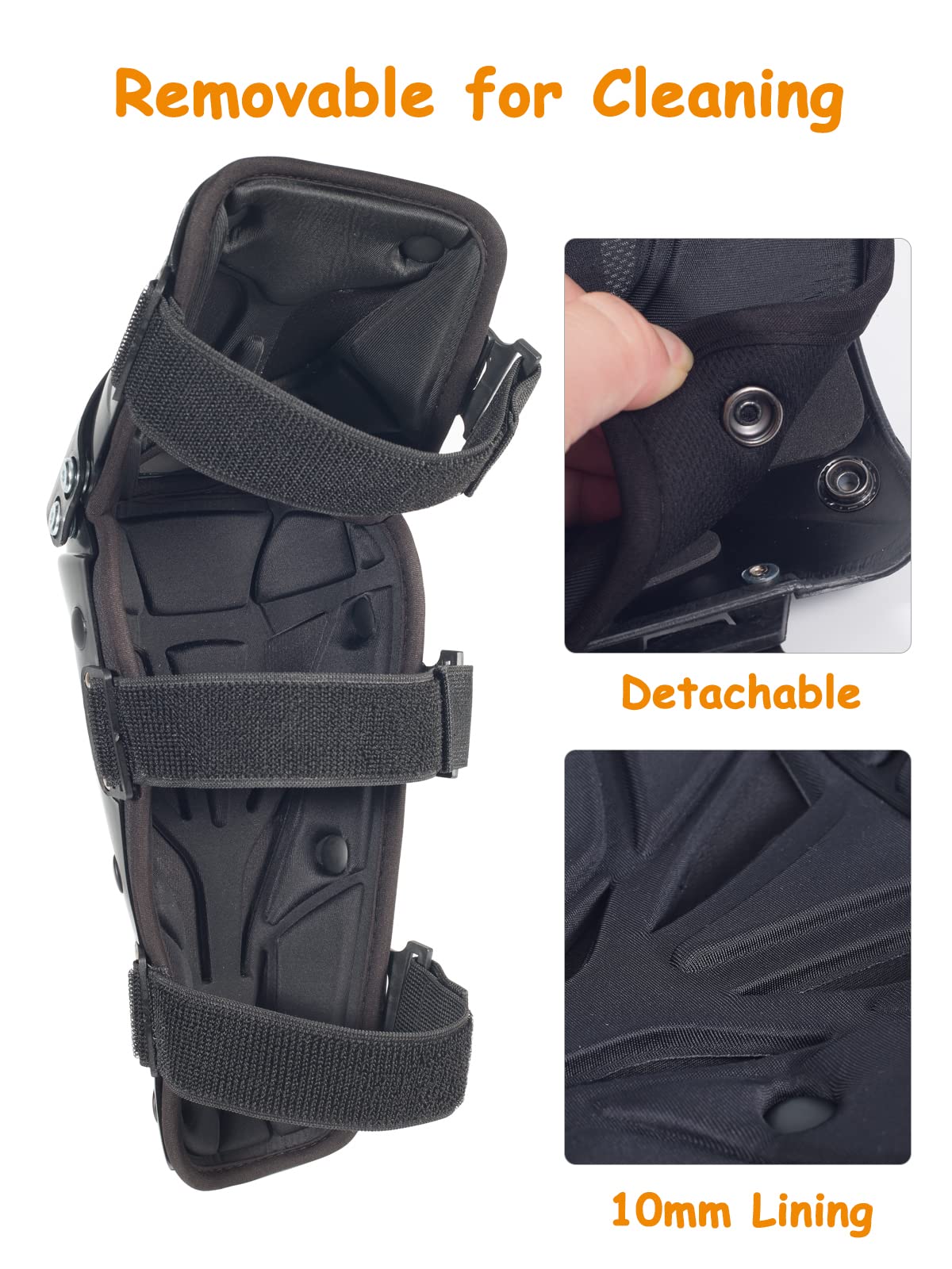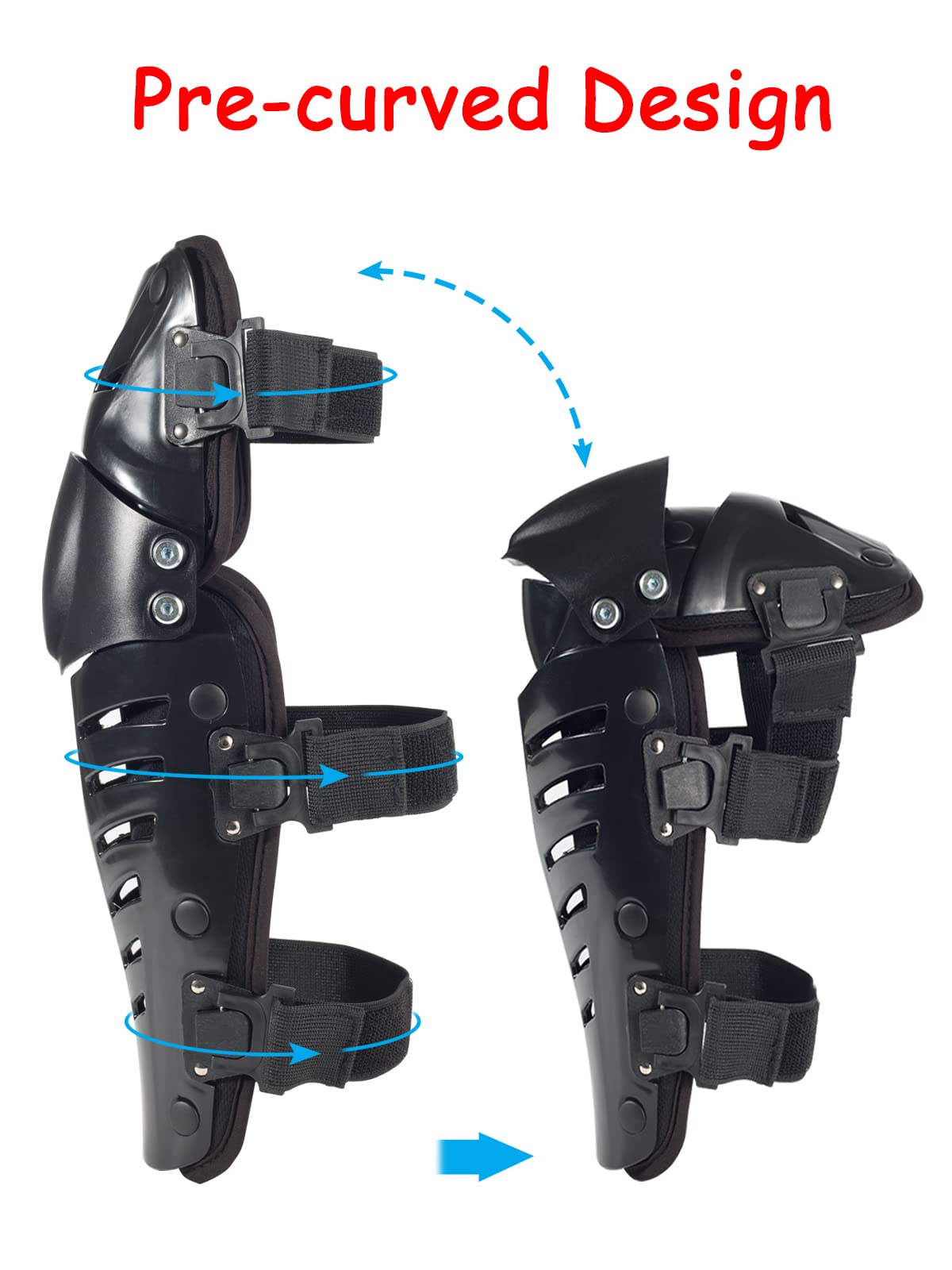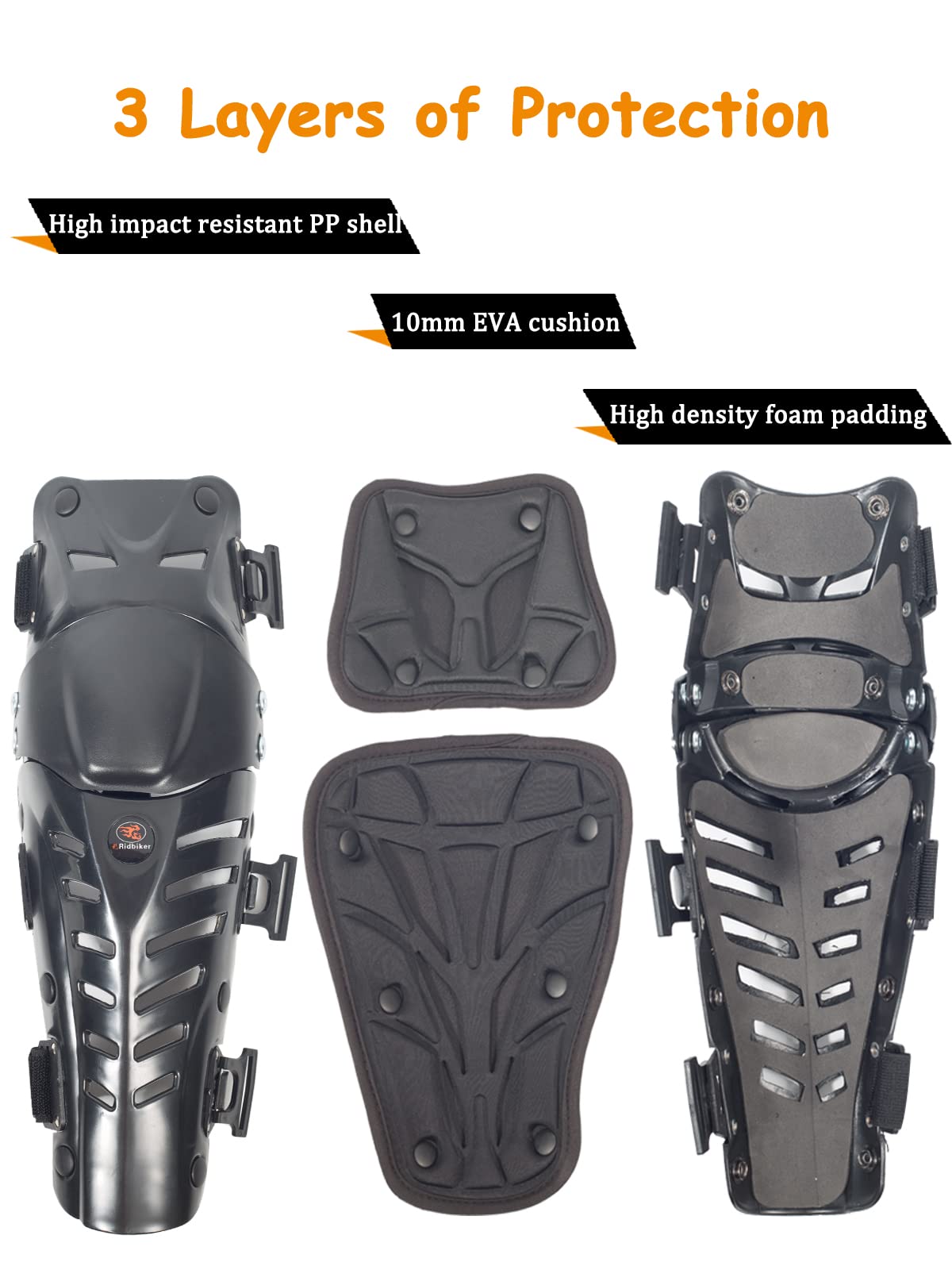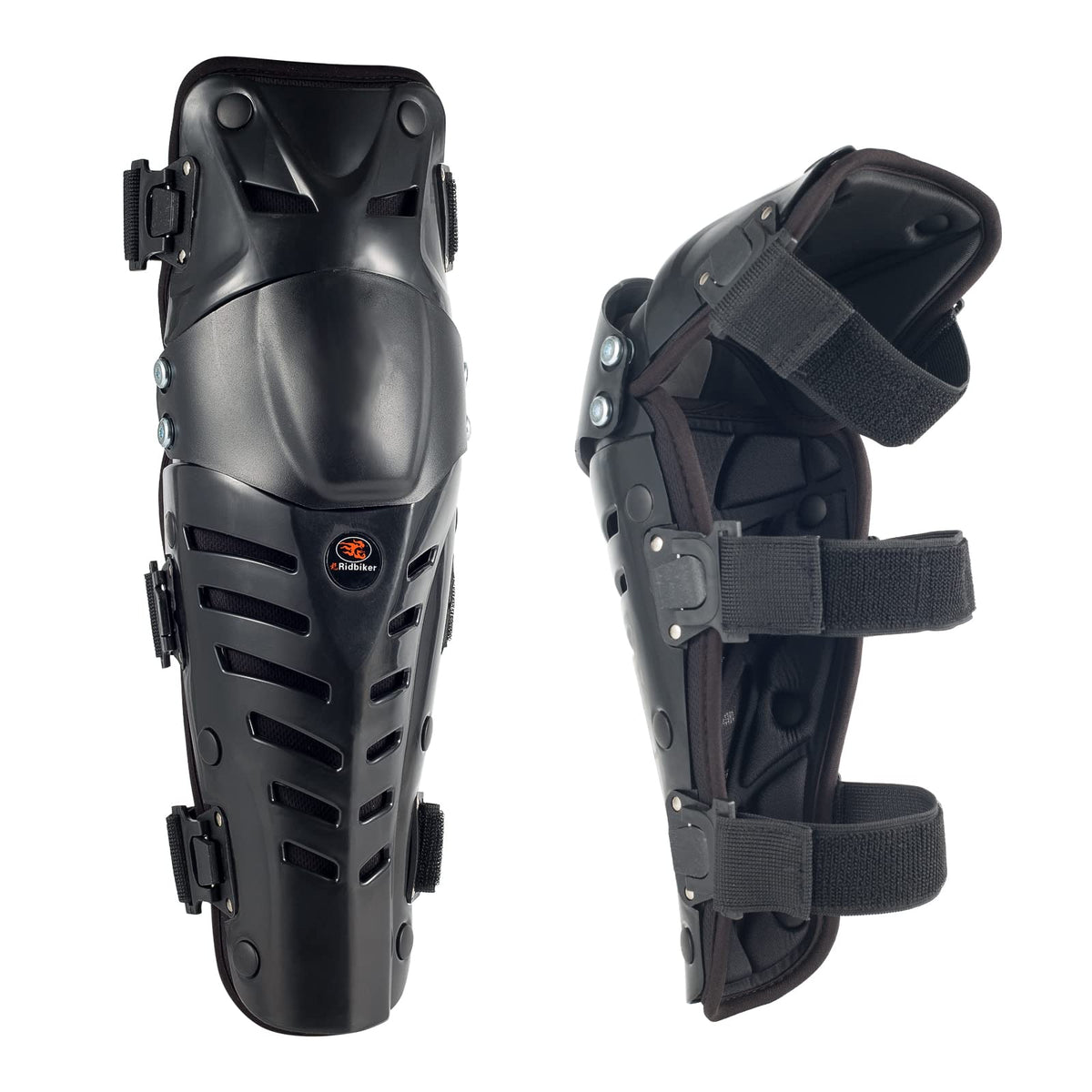 Ridbiker Movable Knee Shin Guard Pads 3 Sections Adjustable Breathable Knee Pads Protector Armor For Motorcycle Cycling Racing Long Leg Sleeve Gear Crashproof 1 Pair (Regular, Black)