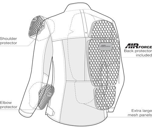 CHECK SIZE CHART - for the best fit please check the size chart in gallery, if you measure between sizes we suggest to order larger size. | PROTECTION - Lightweight honeycomb structure CE Certified back, shoulder and elbow Protectors ensures protection and free airflow | FUNCTIONALITY - jacket has inner waterproof pocket, additional inner, and 2 outer pockets. | VENTILATION - more than half of the jacket is made of extra breathable mesh fabric which make this jacket perfect for hottest summer days. | COMFORT - jacket with protectors weighs only 1400 g, you won't feel you are wearing one
