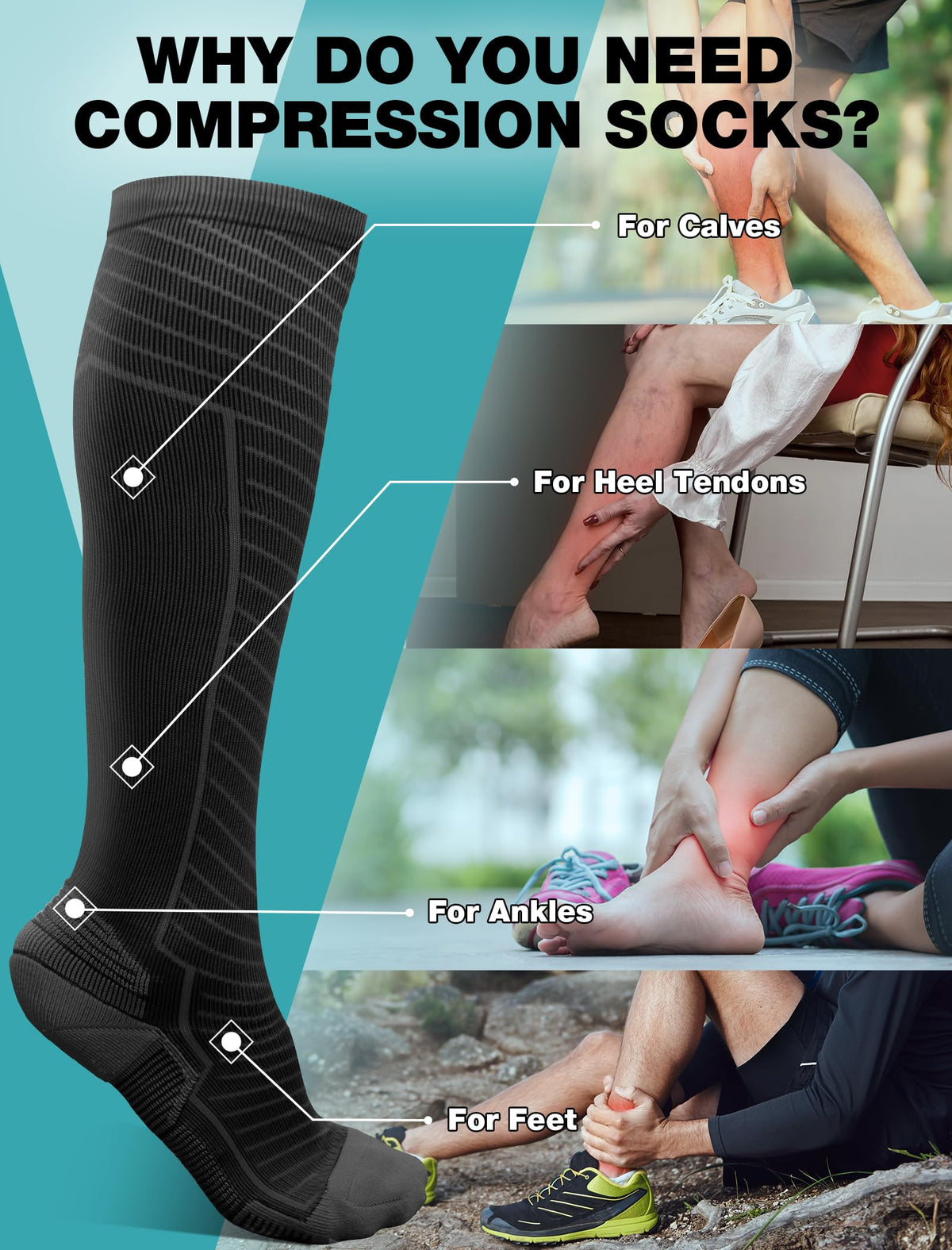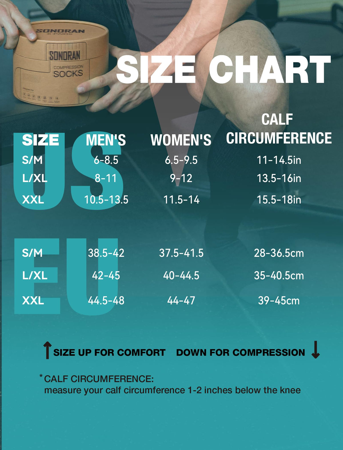 Q: Are these compression socks suitable for both men and women?A: Yes, the SONORAN Compression Socks are unisex and designed to provide versatile support for both men and women, making them ideal for various activities such as running, travel, and athletics.