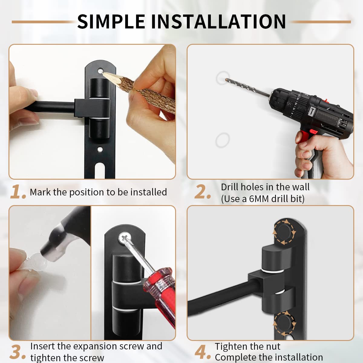 VUAOHIY Motorcycle Helmet Rack, Helmet Holder Wall Mount 180 Rotation Hanger with 2 Hook for Coats, Caps, Motorcycle Accessories