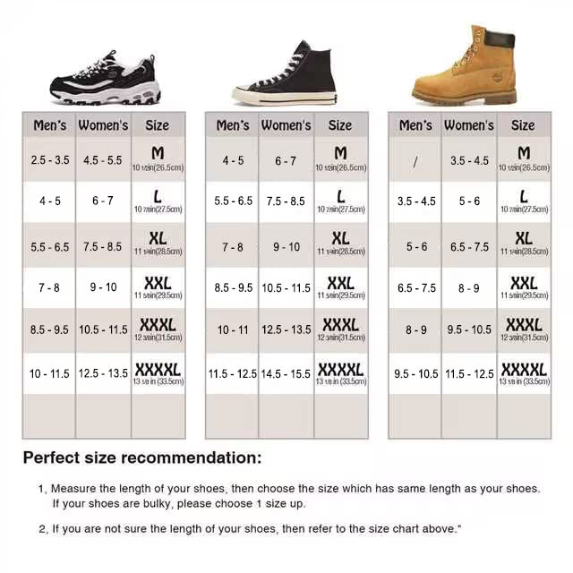 Please refer to the size chart picture, make sure the cover is 0.5” larger than the length of your soles. If your shoes are bulky, please choose 1 size up.