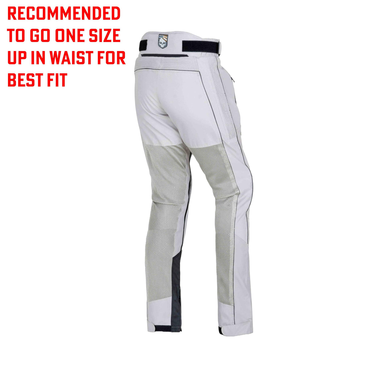 DURABLE & ABRASION RESISTANT FABRIC: These motorcycle men pants are constructed of highly abrasion resistant 600D Polyester and Mesh fabric. These motorcycle pants with armor for men have melt resistant 1680D Matte Polyester on lower legs. These adv motorcycle pants are stitched using temperature resistant nylon thread. | COMFORTABLE & FUNCTIONAL DESIGN: These adv pants have flex expansion panels on hips, knees and tailbone for ergonomic fitment and adjustability. Padded rear waist panel on these armor motorcycle pants for comfort. Elasticated waist inserts and waist adjustment belts on these men