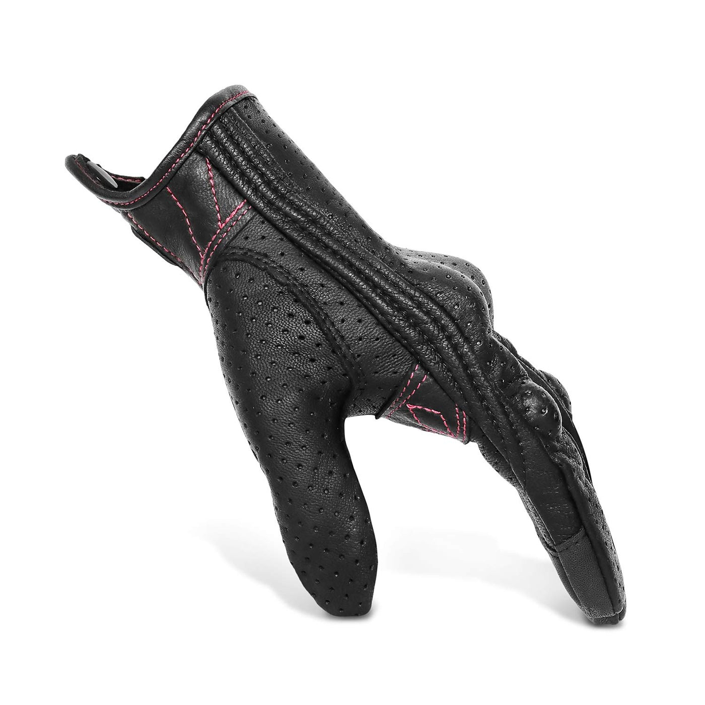 Women ’S Touchscreen Motorcycle Gloves Full Finger Black Leather Armored Ladies Motorbike Gloves (G01W-Black Leather With Rose Line, M)