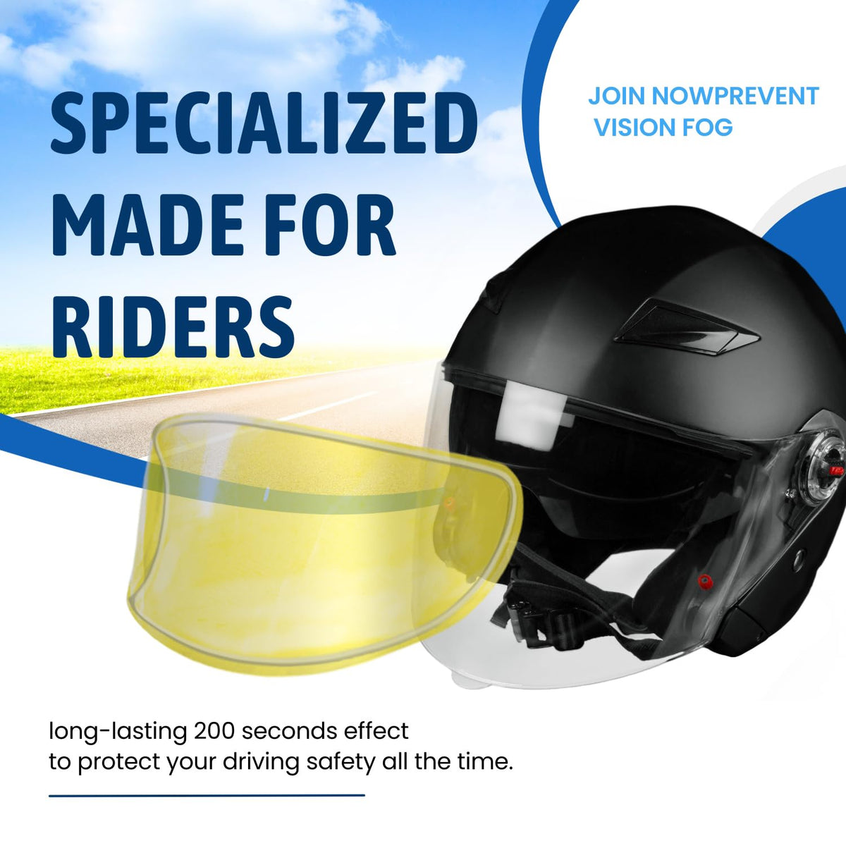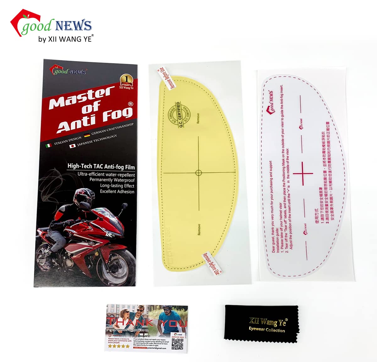 Q: What is the lifespan of the XII WY Universal Motorcycle Full Face Helmet Shield Anti Fog Film?A: The anti-fog film is designed to have a durable lifespan of over 3 years, providing long-lasting protection against fogging.