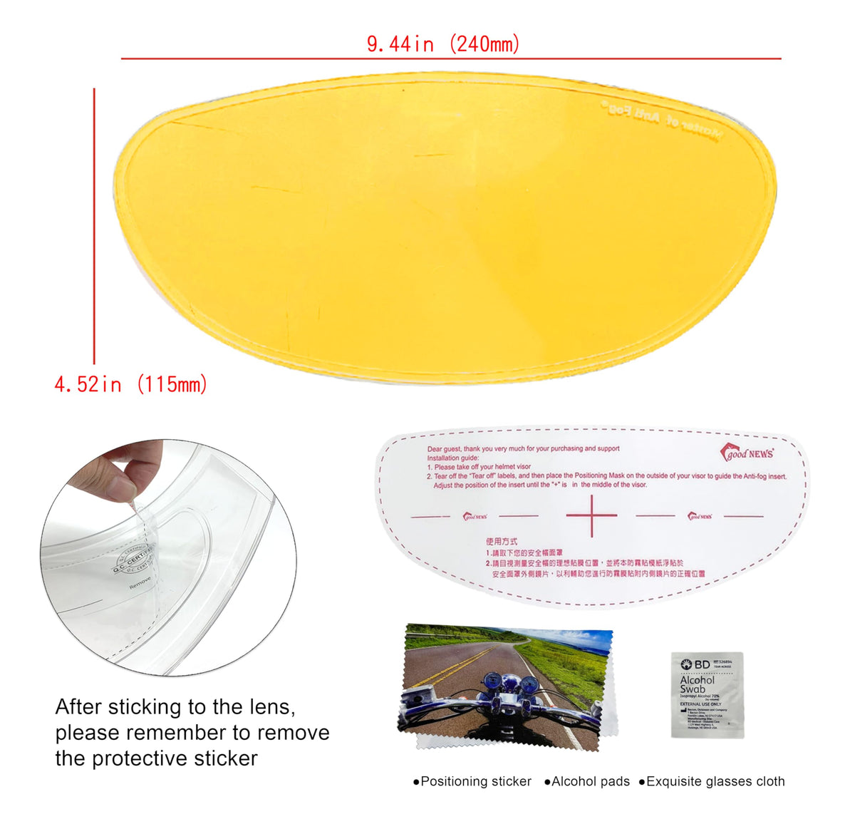 Xii Wy Universal Motorcycle Full Face Helmet Shield Anti Fog Film,Yellow Visor Lens Insert Fog Resistant Waterproof Sticker