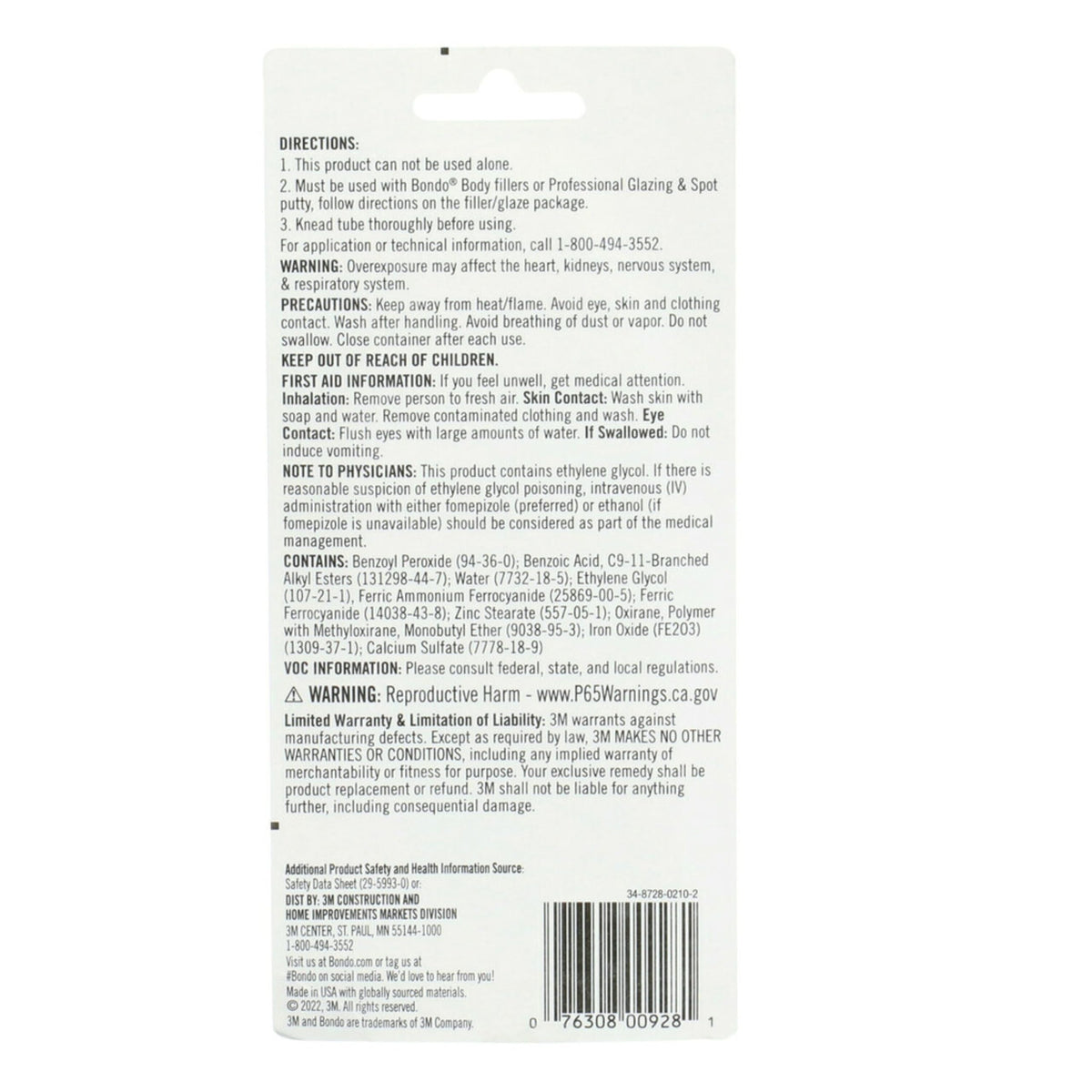 Q: What size is the Bondo Cream Hardener package, and how much does it weigh?A: The Bondo Cream Hardener comes in a convenient 2.75 oz package, making it easy to handle, and it is designed for professional use, ensuring optimal performance for your repair needs.