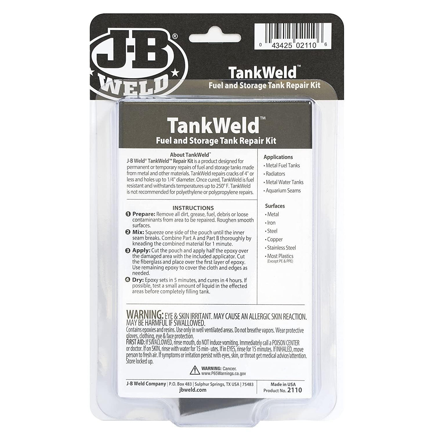 J-B Metal Fuel Tank Repair Kit Contains Everything Required For Making Professional Quality Permanent Repairs. State-Of-The-Art Components And Easy To Follow Instructions Make Quick Permanent Repairs To Leaks In All Types Of Metal Fuel Tanks. Repairs Cracks Up To 4'' In Length And Holes 3/8'' In Diameter.