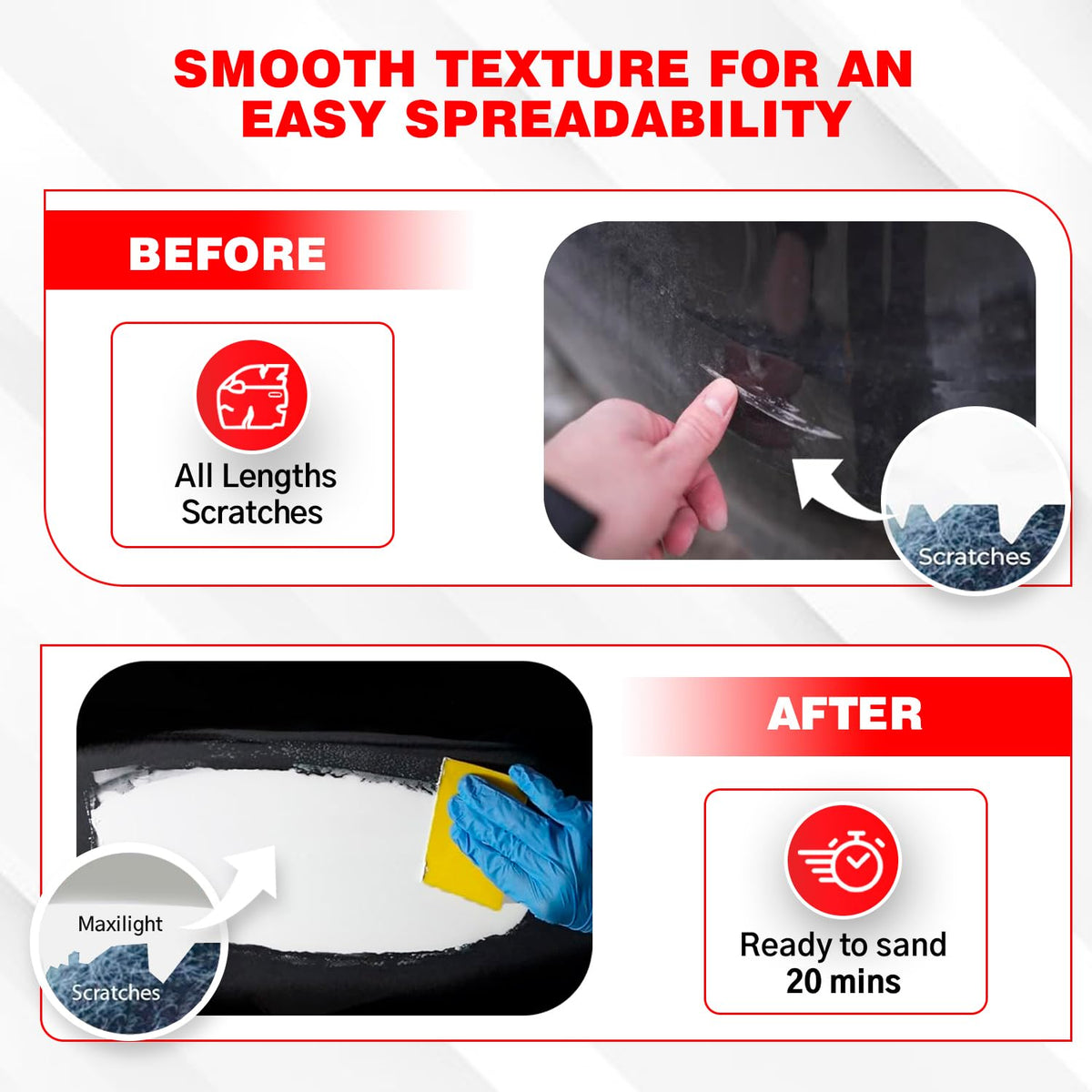 Roberlo Maxilight Superior Lightweight Body Filler - Repair for All Lengths Dents & Scratches, Perfect on Aluminum, Steel, Zinc,