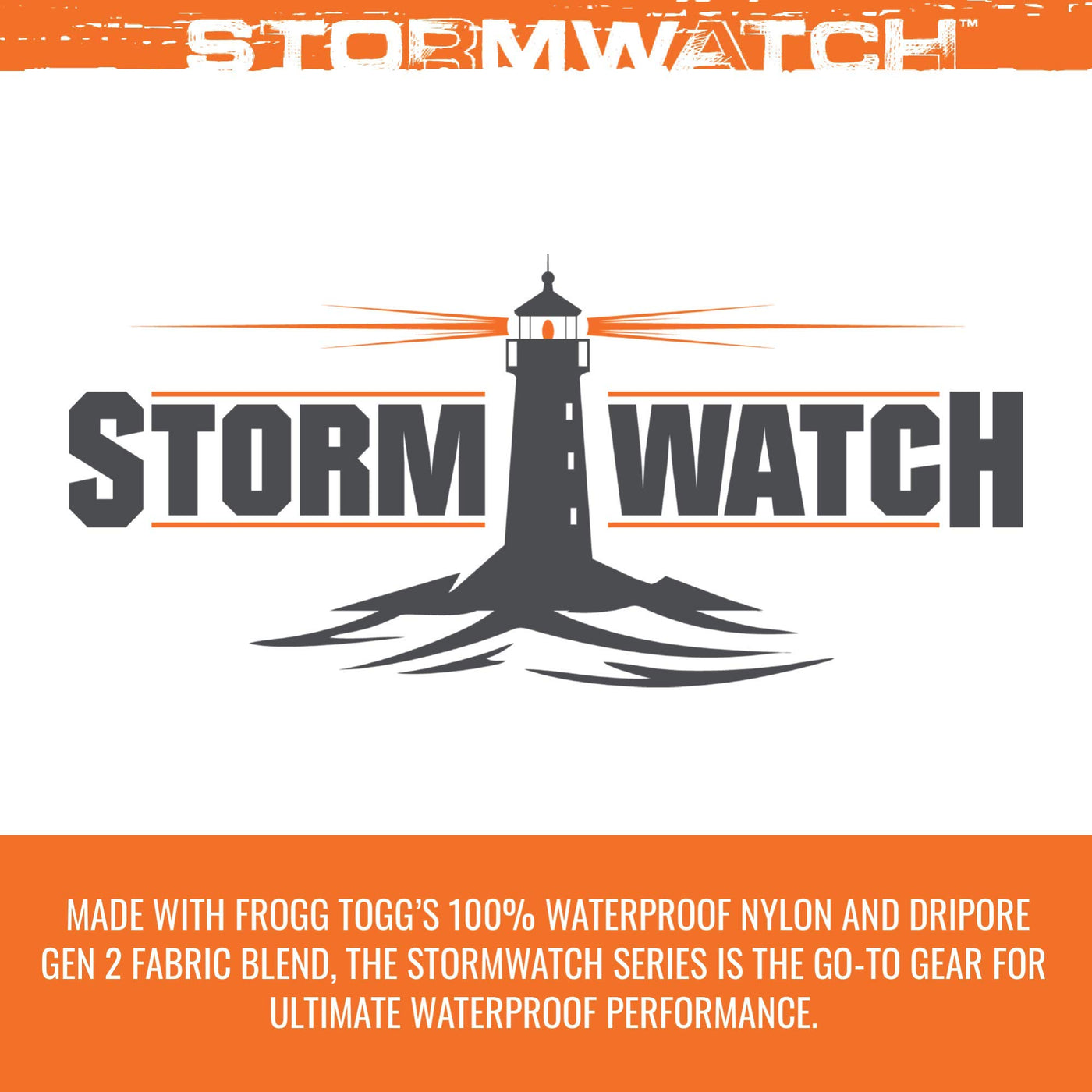 WATERPROOF - Made with frogg toggs breathable, non-woven, seam taped fabric that is waterproof, wind resistant, and extremely lightweight. Perfect for light use when reliable waterproof protection is necessary | AFFORDABLE PROTECTION - made with waterproof nylon and DRIPORE Gen 2 fabric, the Stormwatch provides excellent, affordable, durable, and reliable rainwear | FEATURES - Jacket features an adjustable hood with cord locks, inner and outer storm flap with snap closures, zippered external and internal pockets, adjustable wrist cuffs, cord-lock adjustable waist and fully taped seams | USES - The Stormwatch Jacket provides 8,000mm waterproof breathable protection making it an excellent choice for a full day in the rain. Perfect for fishing, boating or other wet weather activities | SINCE 1996 - frogg toggs has endeavored to provide the world