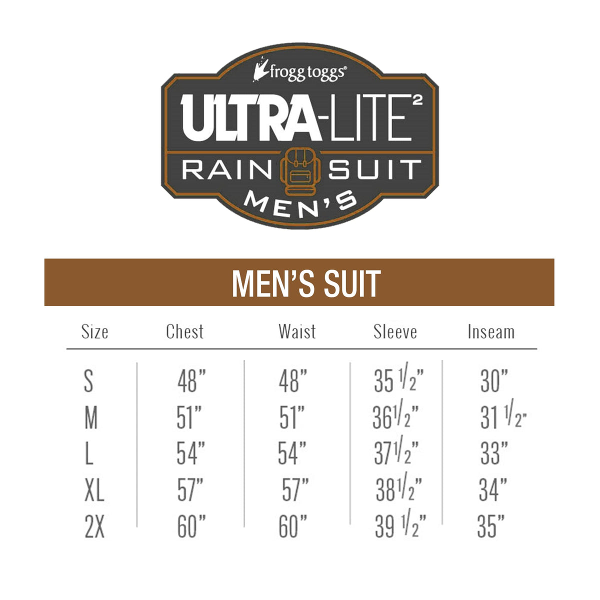 The Frogg Toggs Men'S Ultra-Lite Rain Suit Is Constructed From An Ultra-Lightweight, Waterproof, Breathable, Nonwoven Polypropylene Material. The Patented Bilaminate Technology With Welded Waterproof Seams And Unmatched Sweat-Free Breathability Is A Great Value In Affordable Rain Wear. The Compression Packability Of This Suit Allows It To Pack Down To Storage Pocket Size, And It Is Perfect For Backpacks, Stadium Seats, Or Hunting Packs.