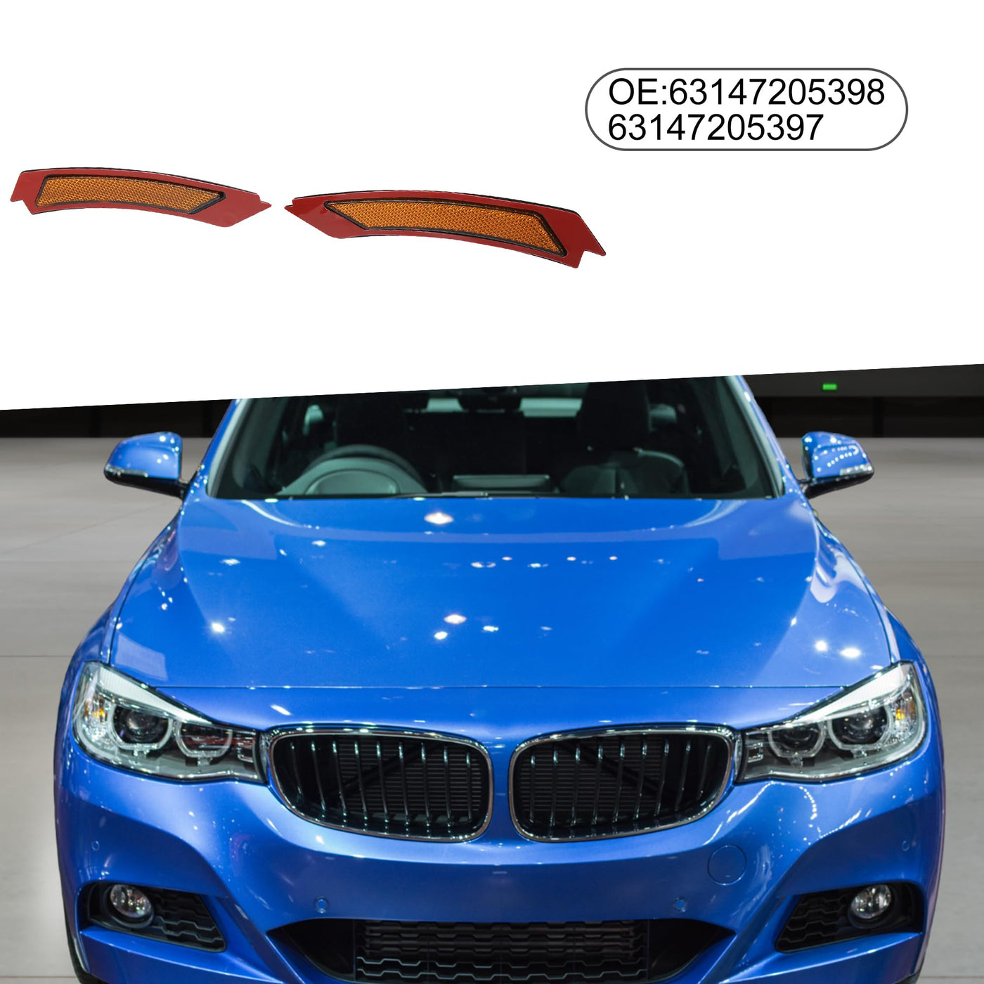Details: Type: Front Bumper Reflectors Placement On Vehicle: Front, Left, Right Part Number: 63147205398 63147205397 Material: Plastic Color: Red, Yellow Size: 21X3.6Cm / 8.27&Quot;X1.42&Quot;(L*W) Bulbs Included: No