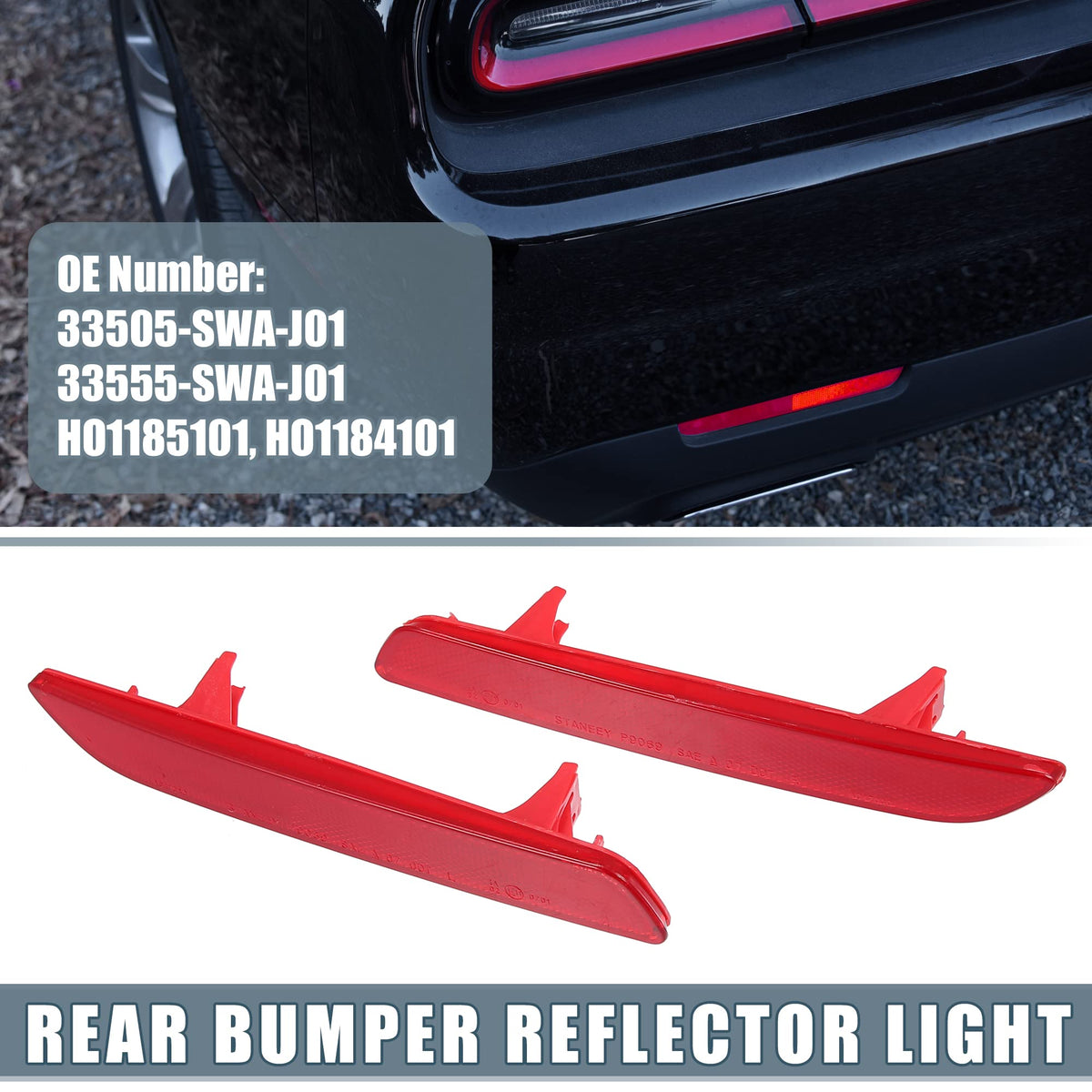 Features: This Rear Side Marker Reflector Is Made To Direct Replace The Old Or Broken Rear Bumper Reflector Lamp On Specific Vehicle. The Side Marker Indicator With Strong Penetrating Power, It Can Be Used In Places Such As Night, Rain, Detours, Roads And Tunnels. Made Of Durable Plastic With Stable Structure, Not Easy Cracking With Long Service Life. Thickened Shell, Waterproof, Dustproof And Anti Collision. Easy Installation, Just Plug The Reflector On The Bumper. Oe Number: 33505-Swa-J01, 33555-Swa-J01, Ho1185101, Ho1184101