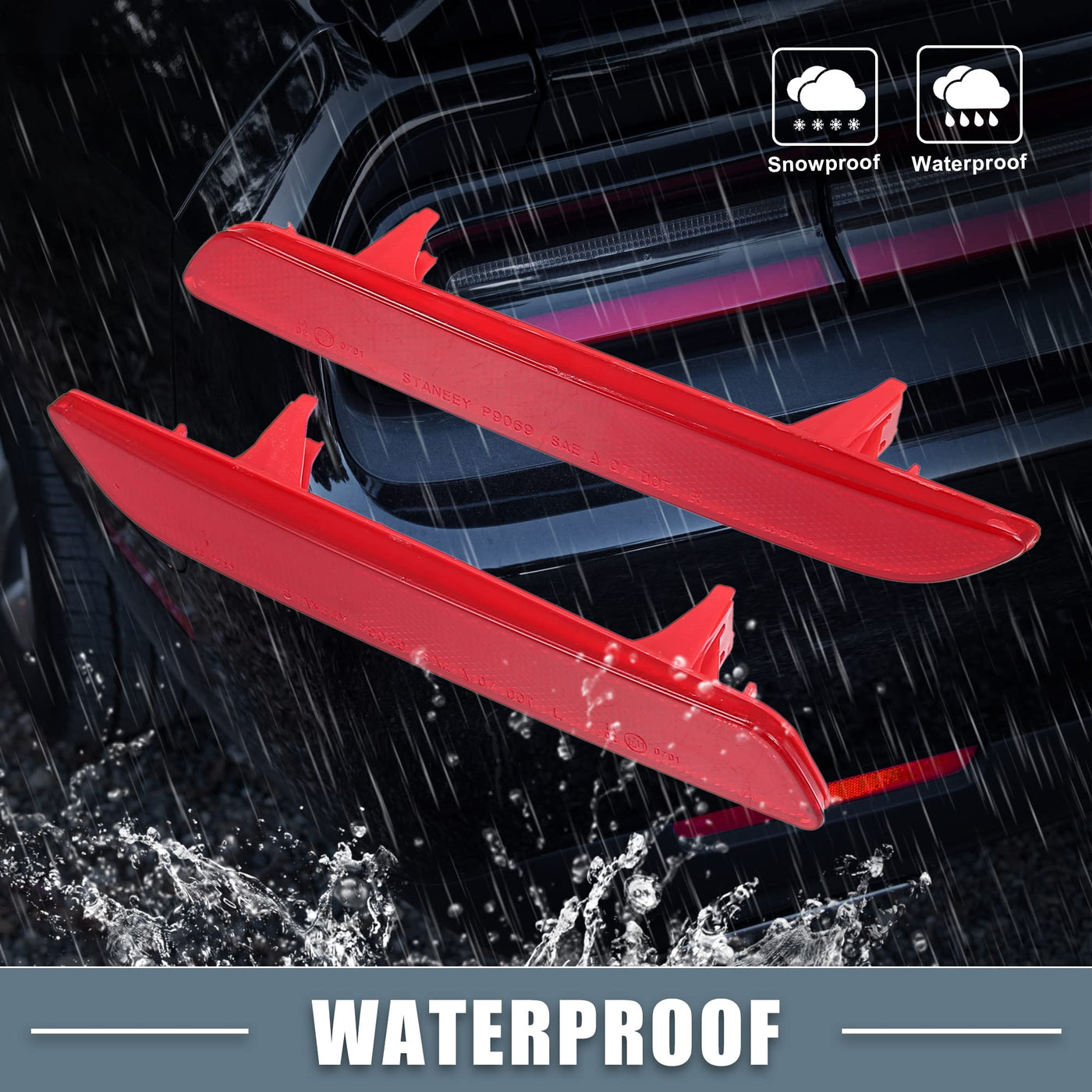 Q: How does the rear bumper reflector improve my vehicle's visibility?A: The reflector light provides strong penetrating visibility, making it ideal for use in low-light conditions such as at night, during rain, or in tunnels, enhancing your vehicle's safety on the road.