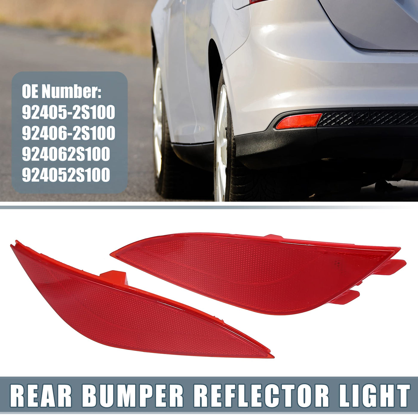 Features: This Rear Side Marker Reflector Is Made To Direct Replace The Old Or Broken Rear Bumper Reflector Lamp On Specific Vehicle. The Side Marker Indicator With Strong Penetrating Power, It Can Be Used In Places Such As Night, Rain, Detours, Roads And Tunnels. Made Of Durable Plastic With Stable Structure, Not Easy Cracking With Long Service Life. Thickened Shell, Waterproof, Dustproof And Anti Collision. Easy Installation, Just Plug The Reflector On The Bumper. Oe Number: 92405-2S100; 92406-2S100; 924062S100; 924052S100