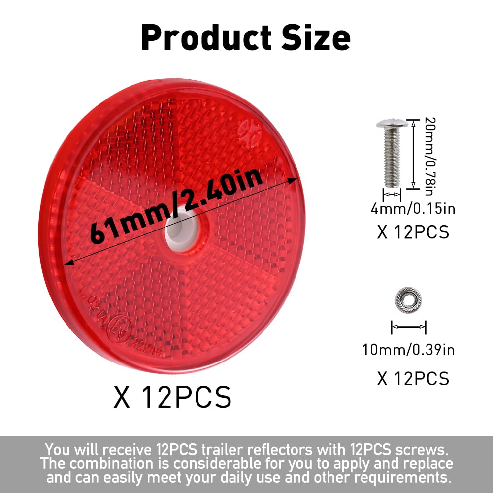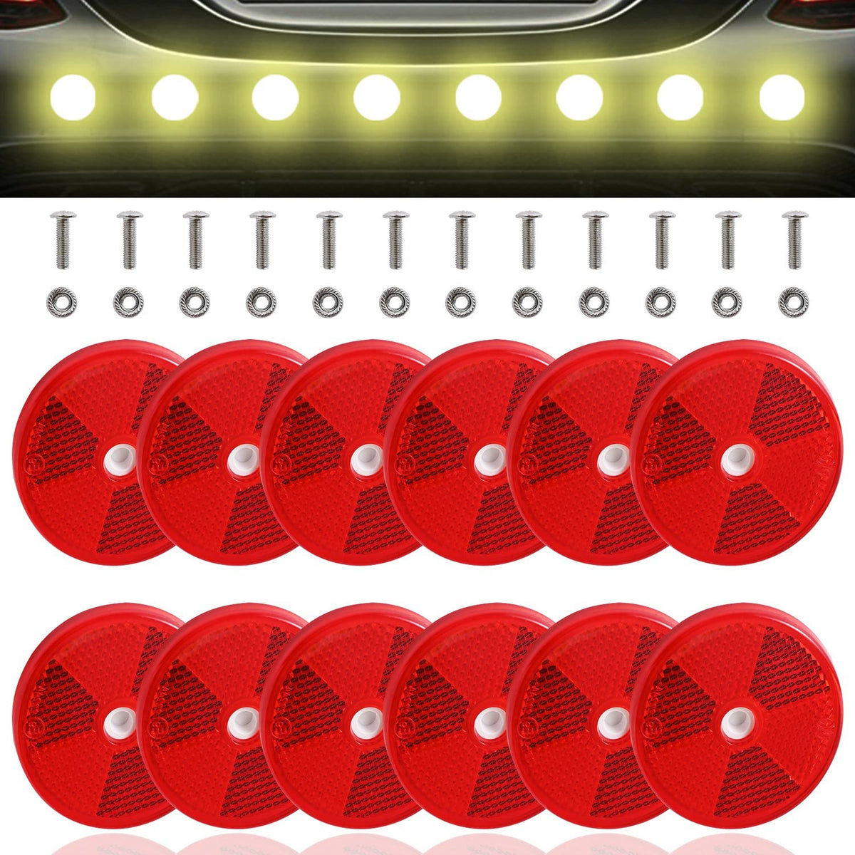 Abnaok 12 Pack Front Reflector Round Reflector For Driveway Fence Gate Posts Trailers Safety Reflectors Automobiles Boats Mailbo