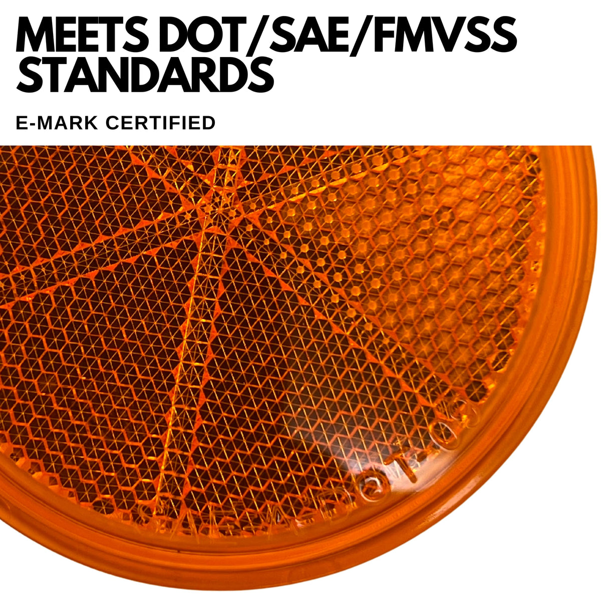Q: Do these reflectors meet safety standards?A: Yes, the reflectors comply with DOT-C2 requirements, making them suitable for use on trailers, trucks, automobiles, and other vehicles to enhance visibility and safety.