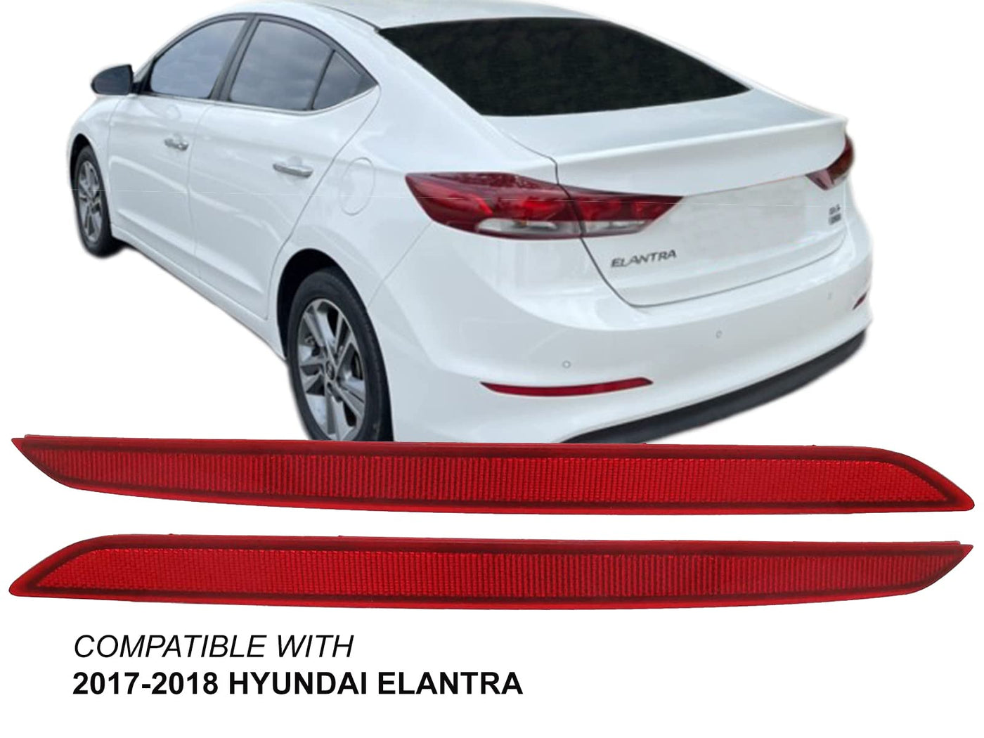 Q: Will these reflectors fit my 2018 Hyundai Elantra?A: Yes, these reflectors are compatible with the 2017 and 2018 Hyundai Elantra Sedan. They fit OEM part numbers 92406F2000 and 92405F2000, as well as Partslink numbers HY1185118 and HY1184118.