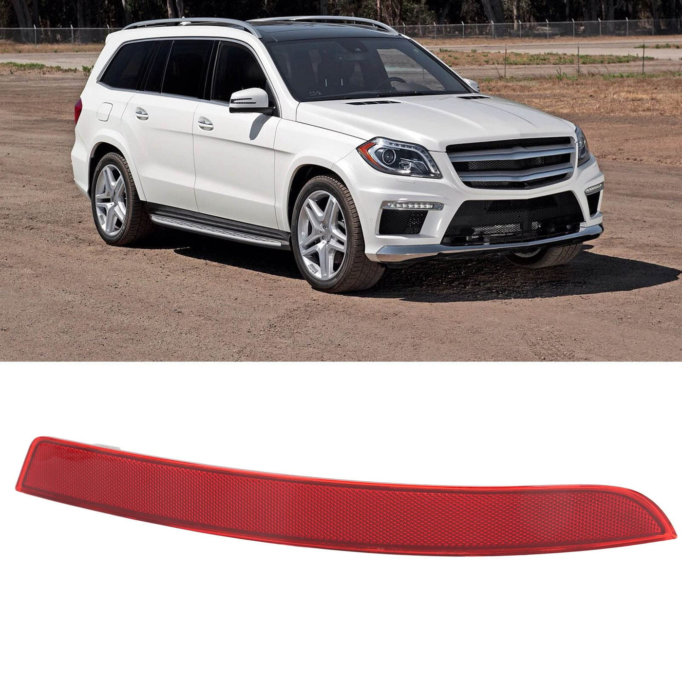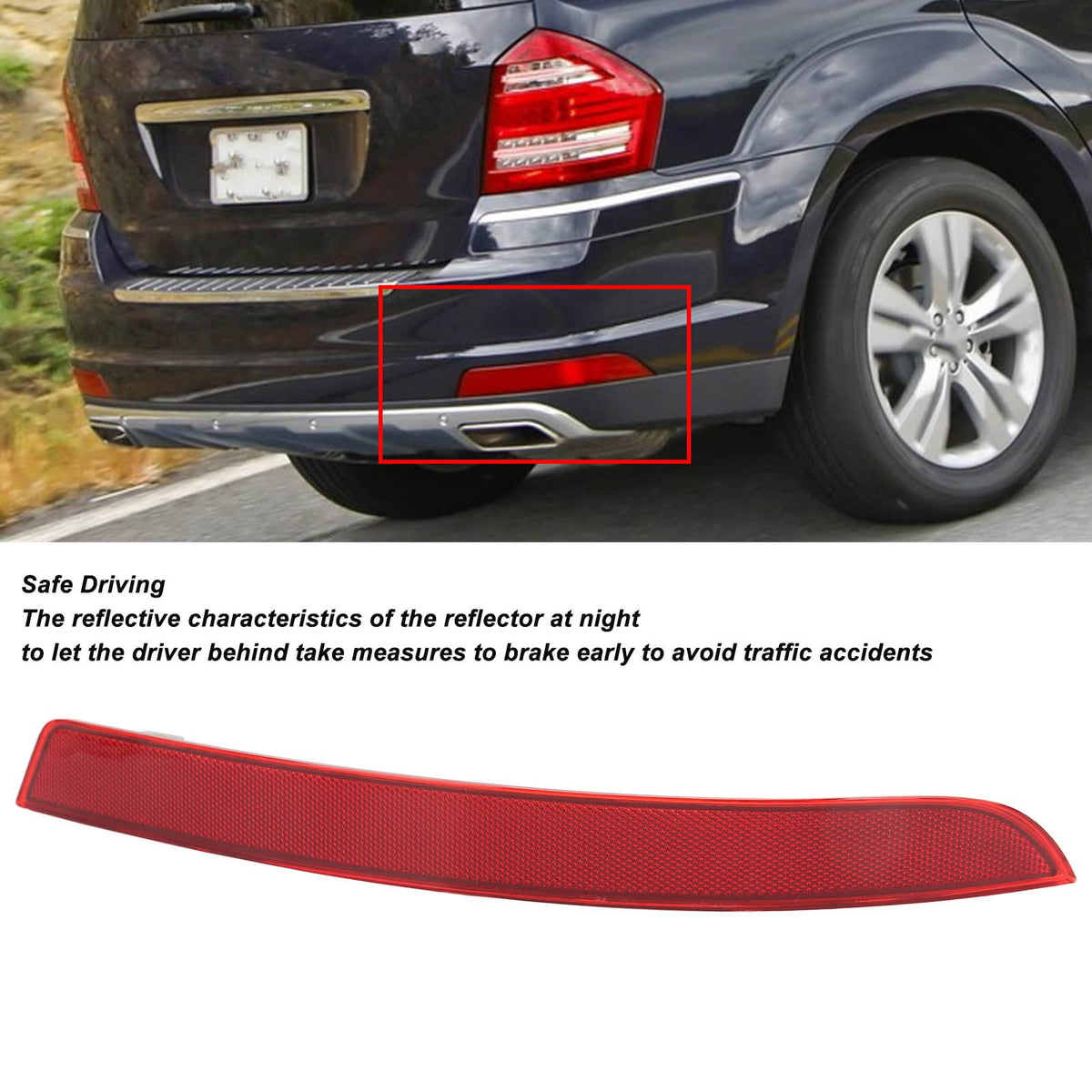 Feature: 1. Fitment: Replacement For Mercedes-Benz Gl63; Replacement For Mercedes-Benz Gl350; Replacement For Mercedes-Benz Gl450; Replacement For Mercedes-Benz Gl550, Etc. 2. Warning Reflector: The Rear Bumper Reflector Has Reflective Characteristics At Night, Allowing The Driver Behind To Brake Early To Avoid Traffic Accidents. 3. Selected Materials: This Rear Bumper Reflector Is Made Of High Strength Abs Materials, Which Is Heat Resistant, Waterproof And Durable. 4. Perfect Fit: Rear Bumper Reflector Is Simple To Operate, No Cutting Or Splicing, No Complicated Operations, Perfectly Match With Original Position. 5. Strictly Tested: This Bumper Marker Reflector Has Been Extensively Tested For Quality And Performance, Dependable And Safe.