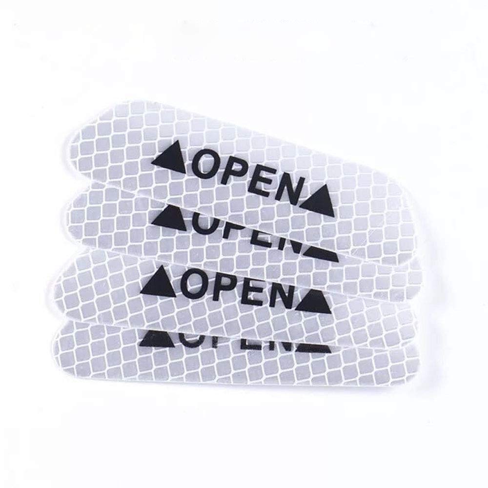 Myezfit Car Safety Reflective Tape Door Open Warning Stickers Reflector Mark Decal - 4Pcs White. The Reflective 'Open' Signs Have The Same Properties As A Street Sign When Light Shines Onto It, Reminds The Driver Of Nearby Car. Reduce The Probability Of Accidental Collisions At Night, Rain And Fog. Reduce Rear-End Collisions And Side Collisions. Fine Workmanship, Sticking Firmly, Waterproof, Not Hurting The Paint, Not Easy To Fall Off. Easy To Install. Can Be Used On Car, Door, Front And Rear Bumper, Nocturnal Backpack, Running Clothes, A Good Choice For Day & Night Walking. Quantity:4Pcs White(Silver). Friendly Tips: The Size Is Measured By Hands, Please Allow Minor Error Of Measurement. Photo Color Might Be A Little Different From The Actual Product Due To Color Display Of Different Monitors.