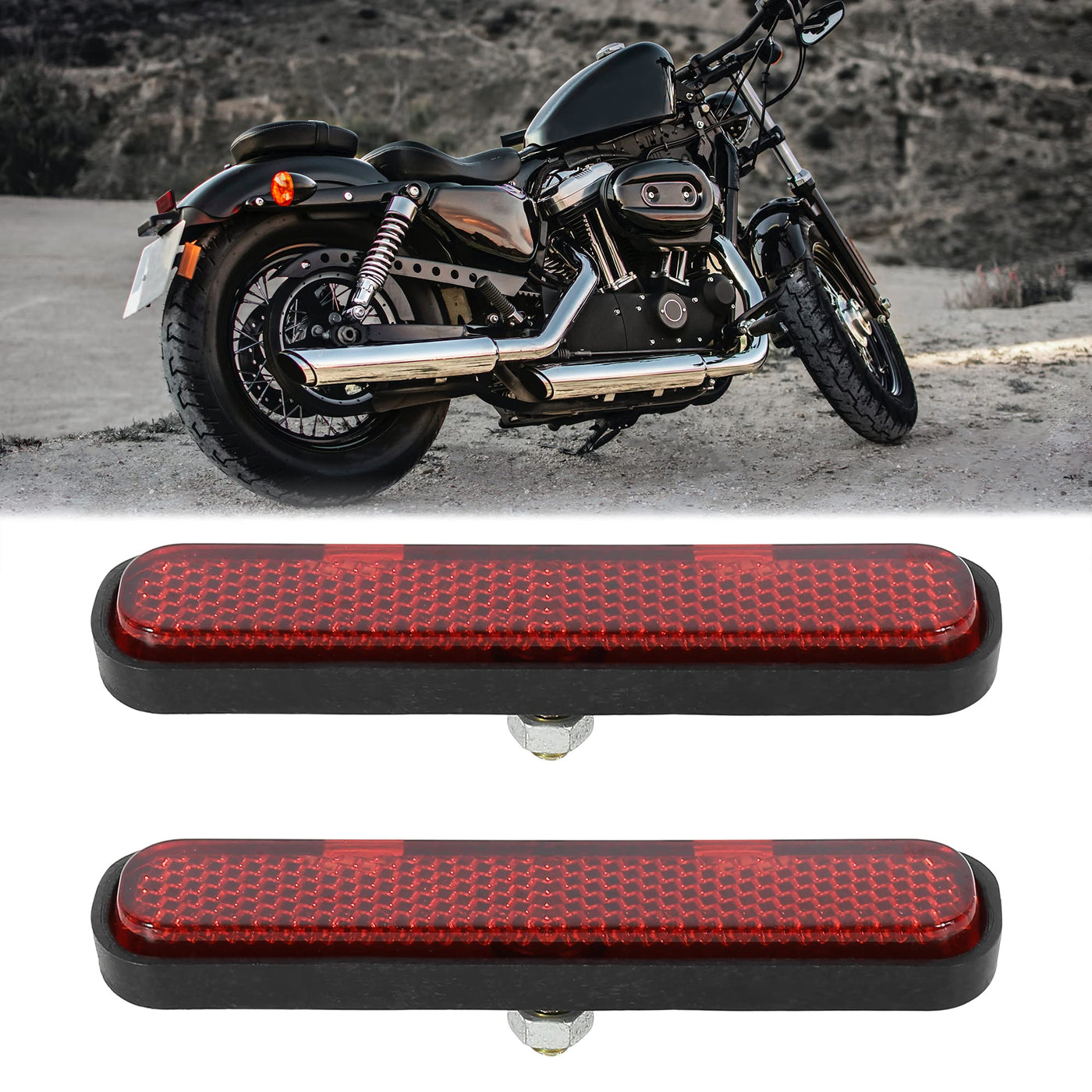Feature: Easy To Install. No Need Tools. Made Of Material Of Quality That Is Endurable. The Motorcycle Reflector Plays An Important Role At Night. M5 Or M6 Specifications Do Not Affect The Installation And Use Of The Product. It Is Used To Warning The Other Drivers To Keep A Safe Distance From Your Motorcycle.