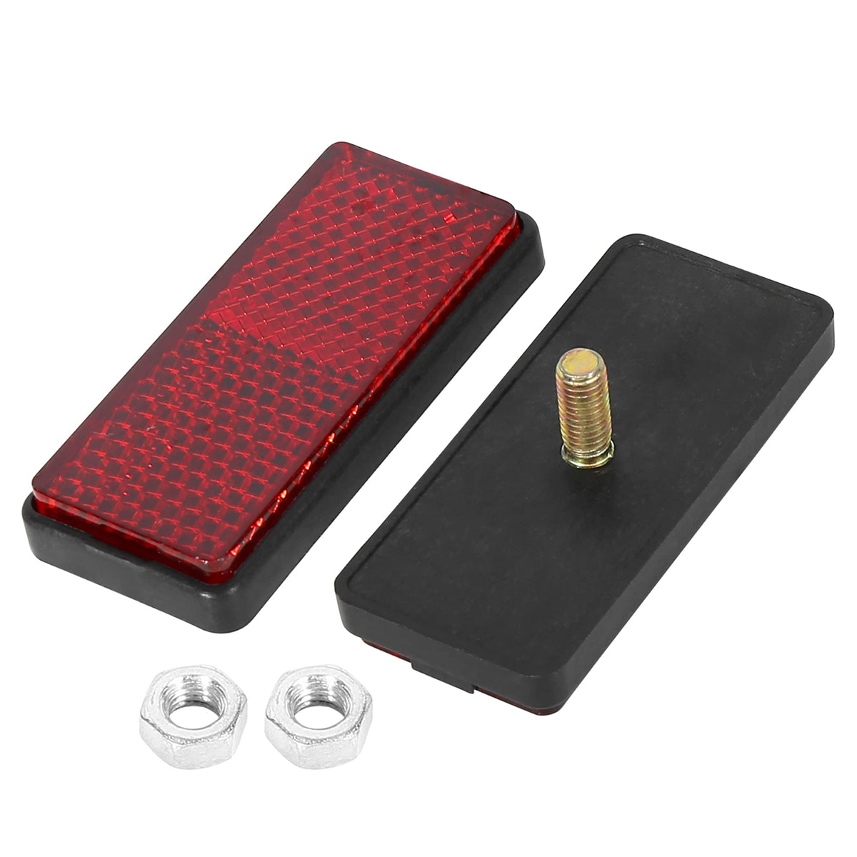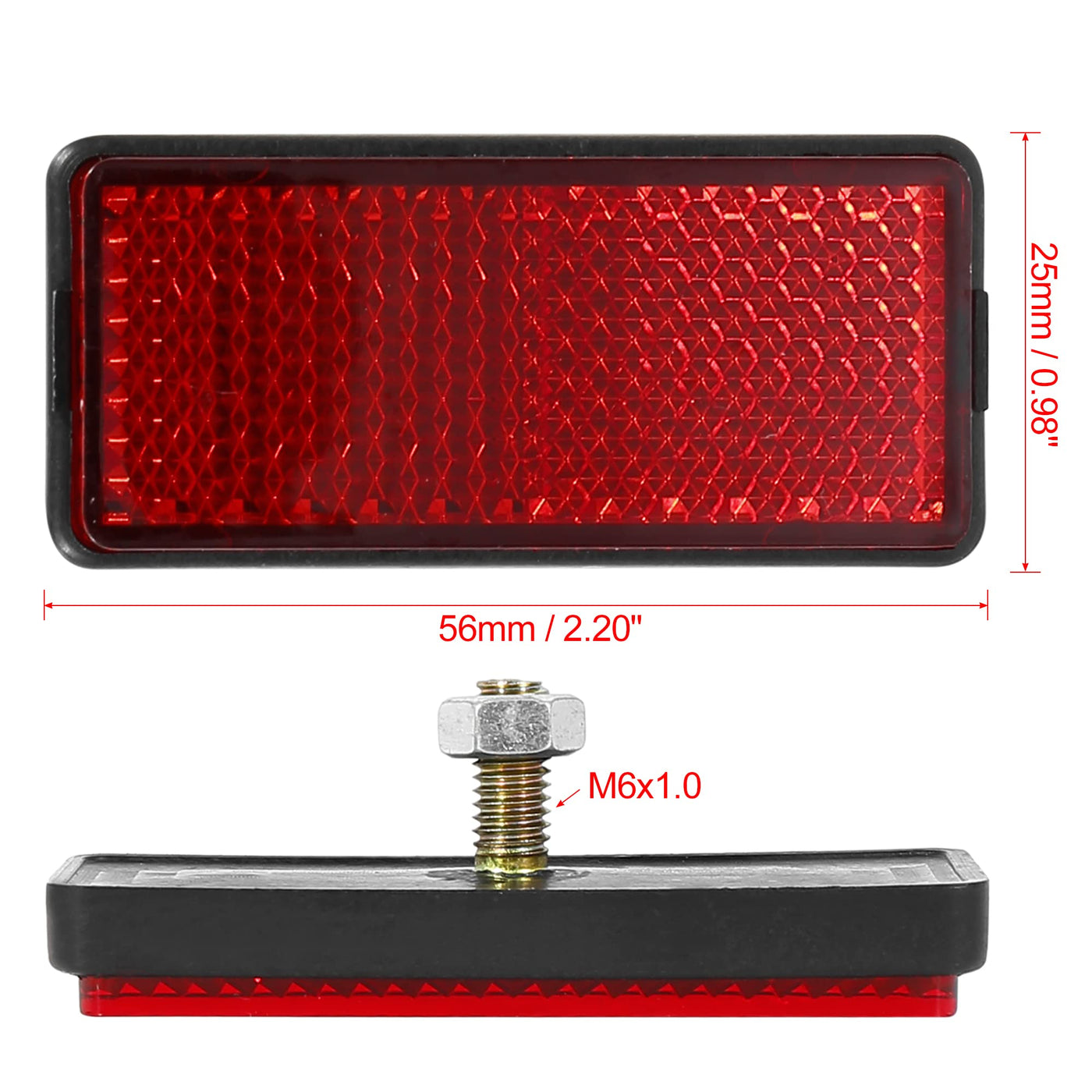 F Fierce Cycle Pair M6X1.0 Red Rectangle Universal Screw Mount Reflective Warning Reflector For Motorcycle Bike 56Mm Length