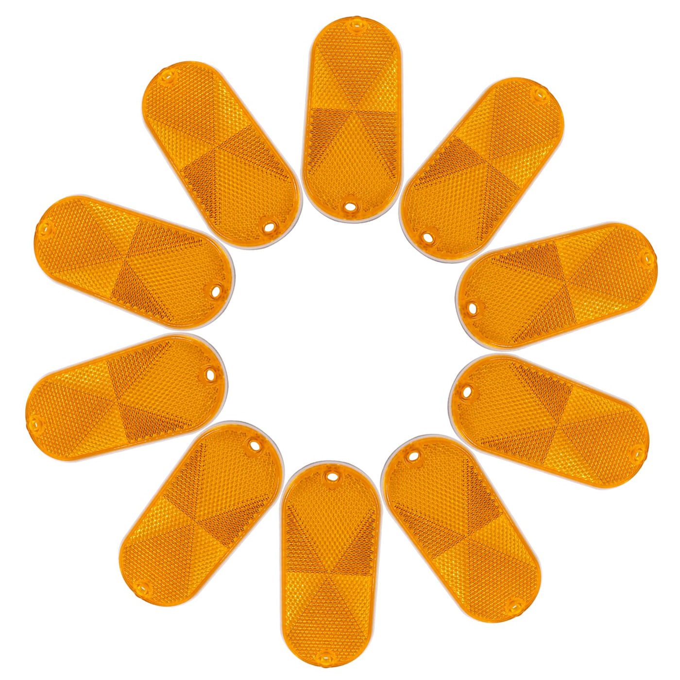 Hitefu 10Pcs Front Reflector, Yellow Oval Safety Reflectors For Roads Mailboxes Automobiles Trailer Boats Tunnels Reflector, Self Adhesive Or Drill Quick Mount
