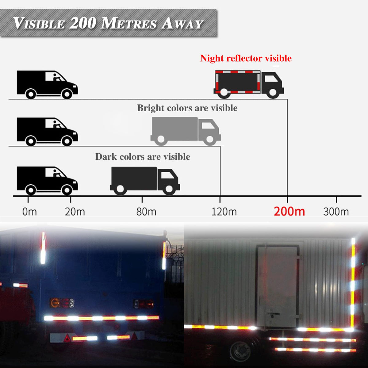Features: High Quality & Reasonable Price. Weather resistant and easy to clean. Keep your car eye-catching in dark night, ensuring driving safety. Also a best adornment to decorate your house. Package Included: 2 x Truck Warning Reflectors Tips: Clean the surface of your car before sticking the reflector and then press it for a firm adhesion.