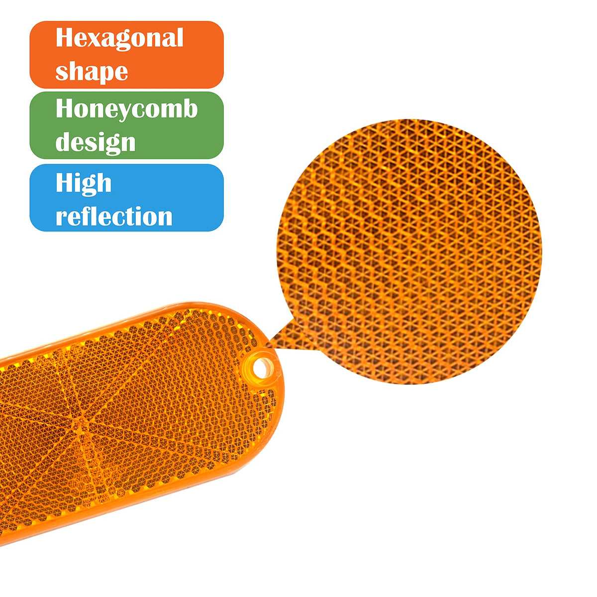 Welnent E-Mark / 4A / Ccc 2Pcs Oval Reflector Self Adhesive Stick On Screw On Trailer Driveway Mailbox (Amber)